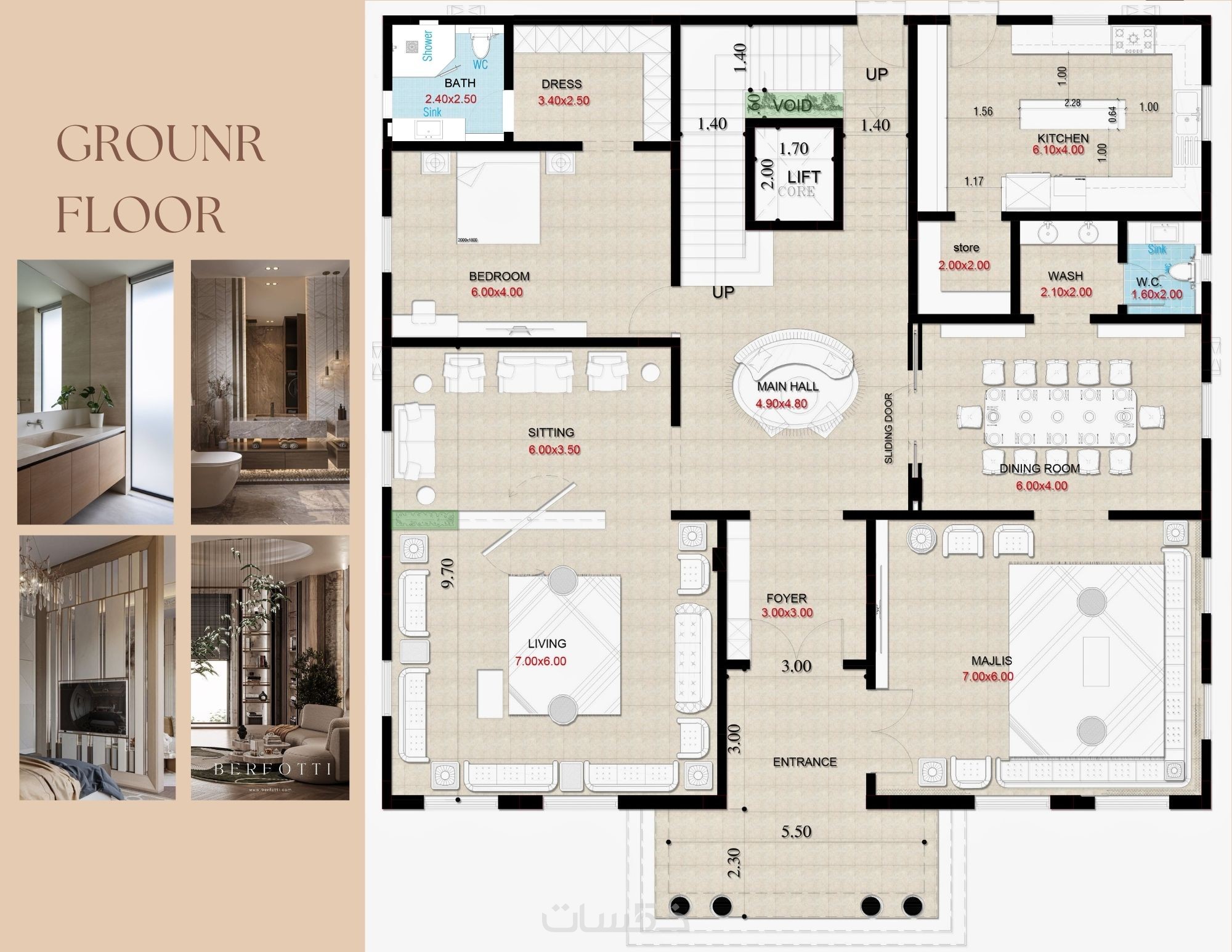 تصميم بمساحة تبدا من 60 متر مربع