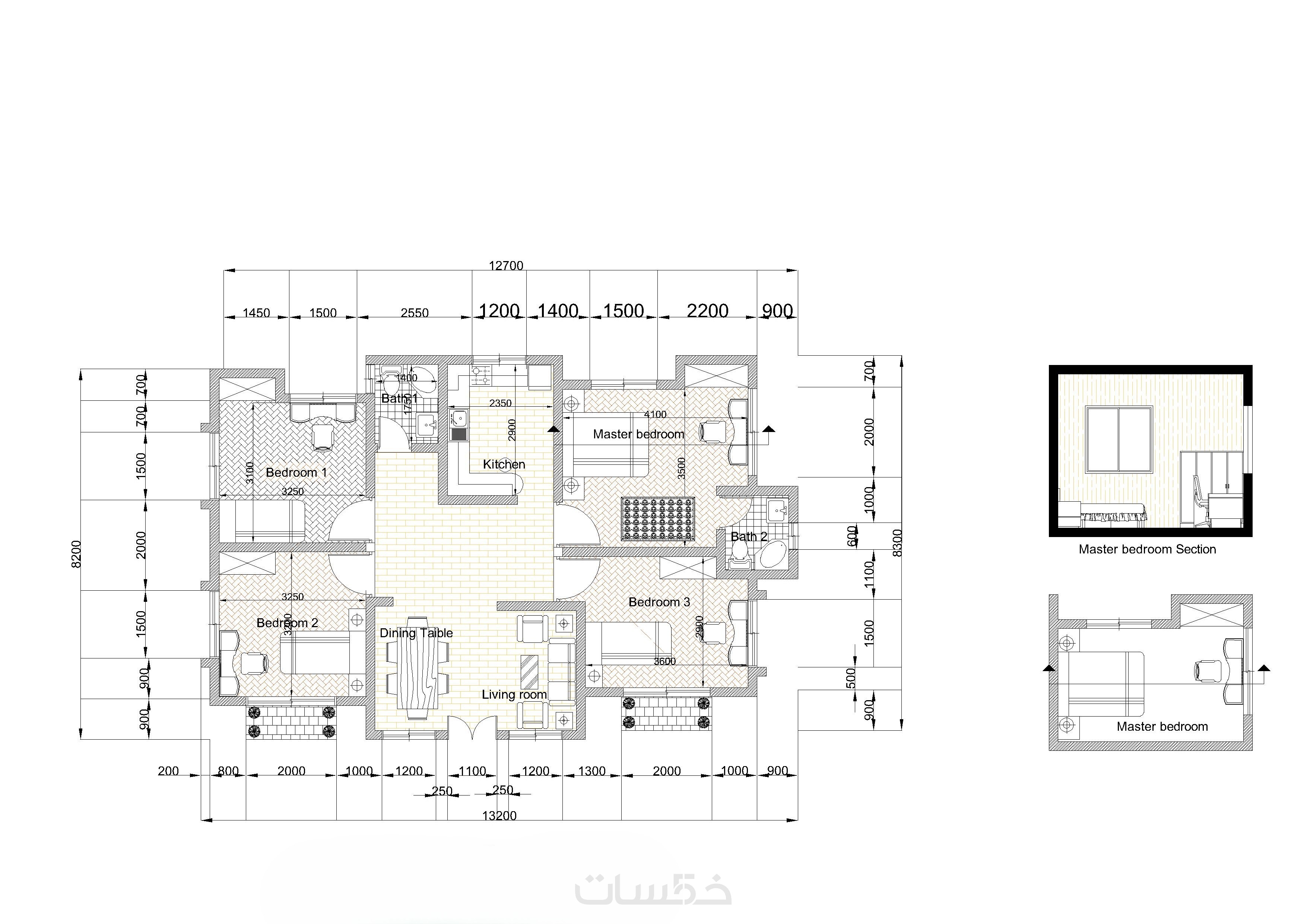 - تعديل واحد مجاني على العمل المقدم. (ملاحظة: يمكنك طلب مساحات أكبر وملف المصدر DWG من خلال تطويرات الخدمة).