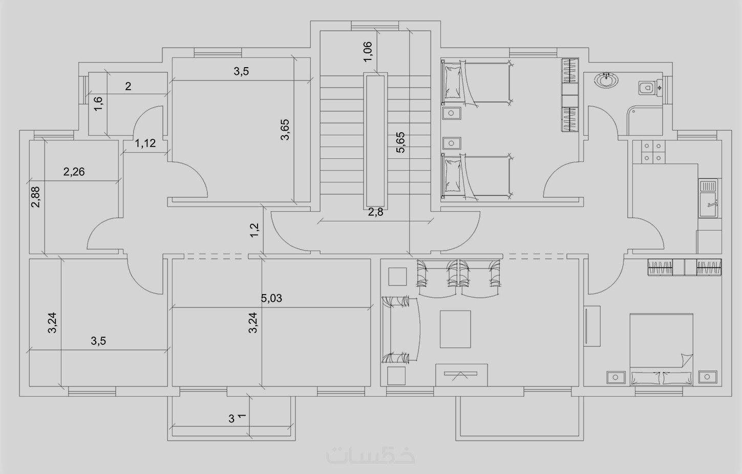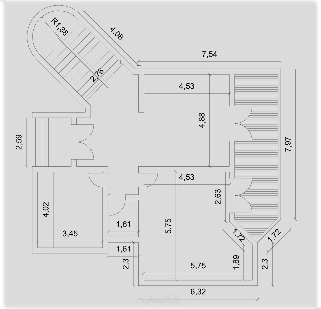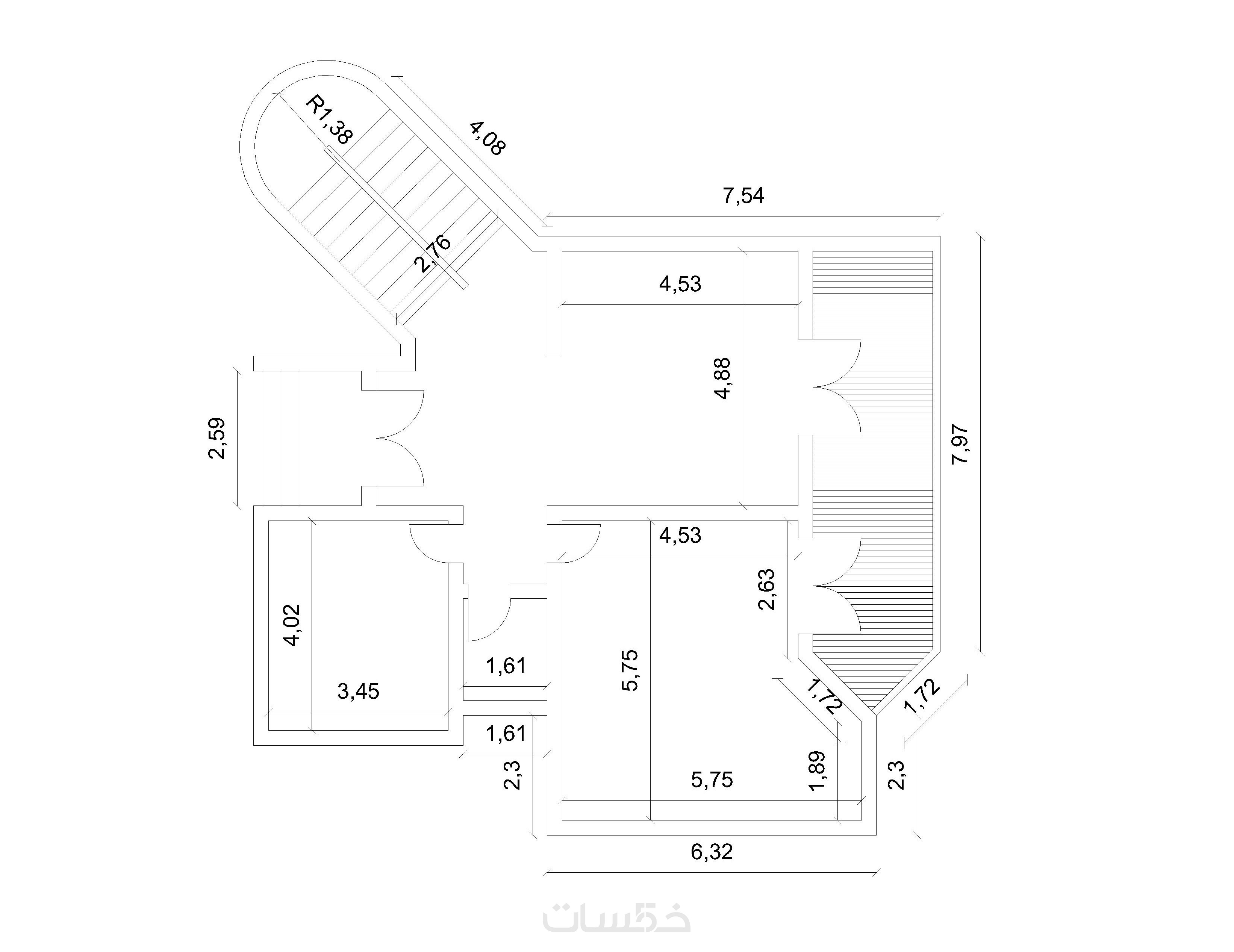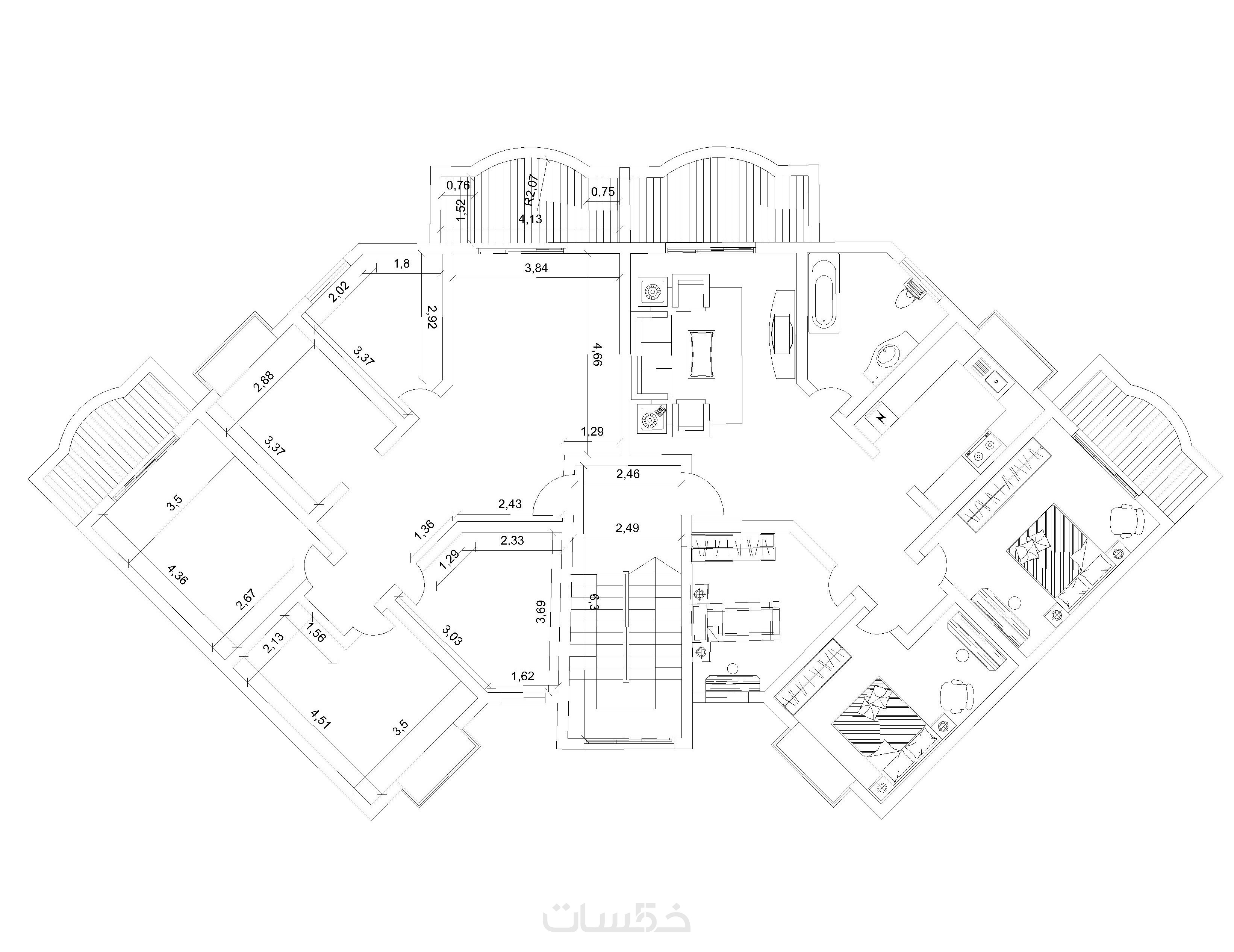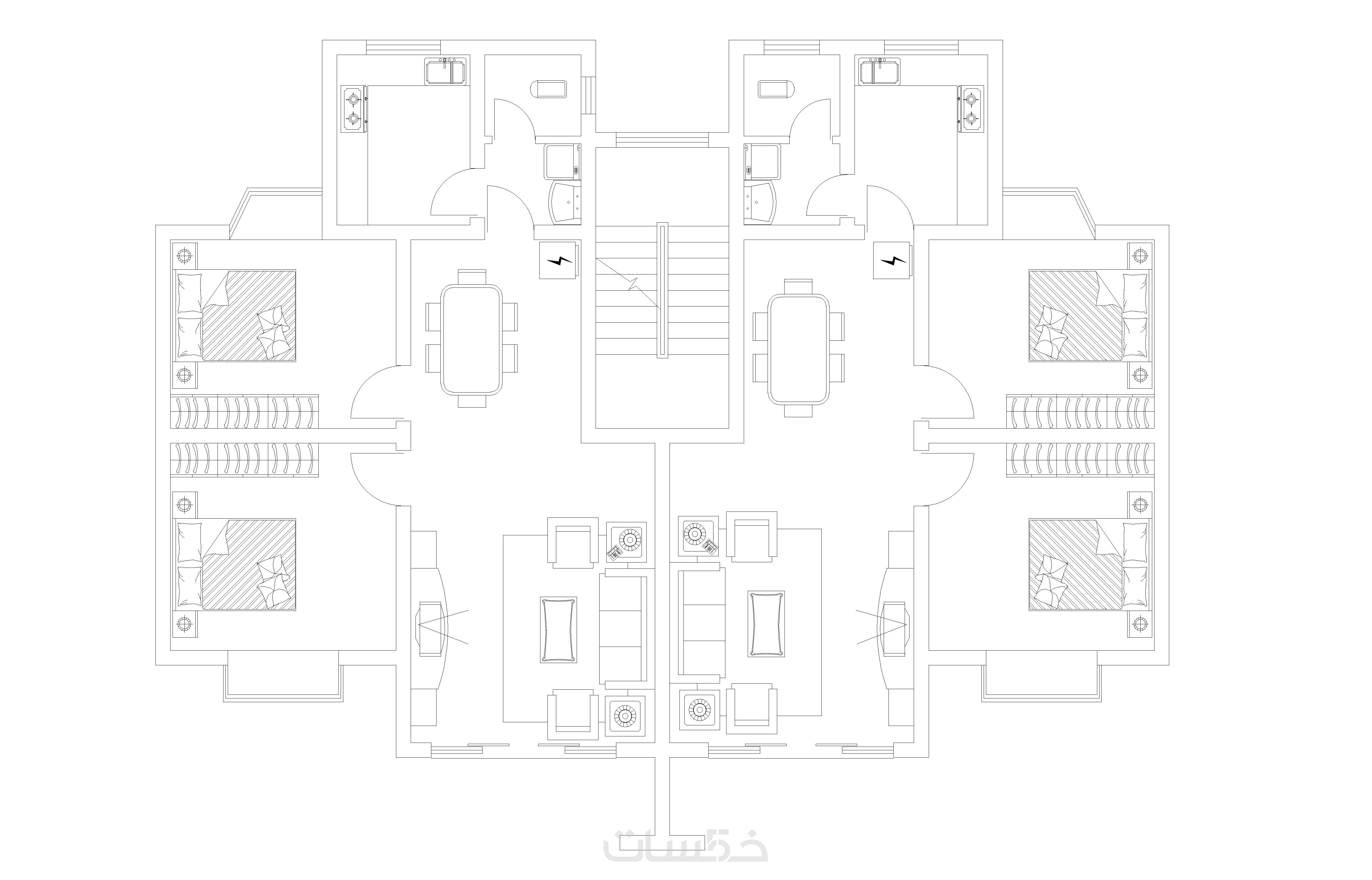 المخطط المعماري بطريقة احتراقية بصيغة dwg.