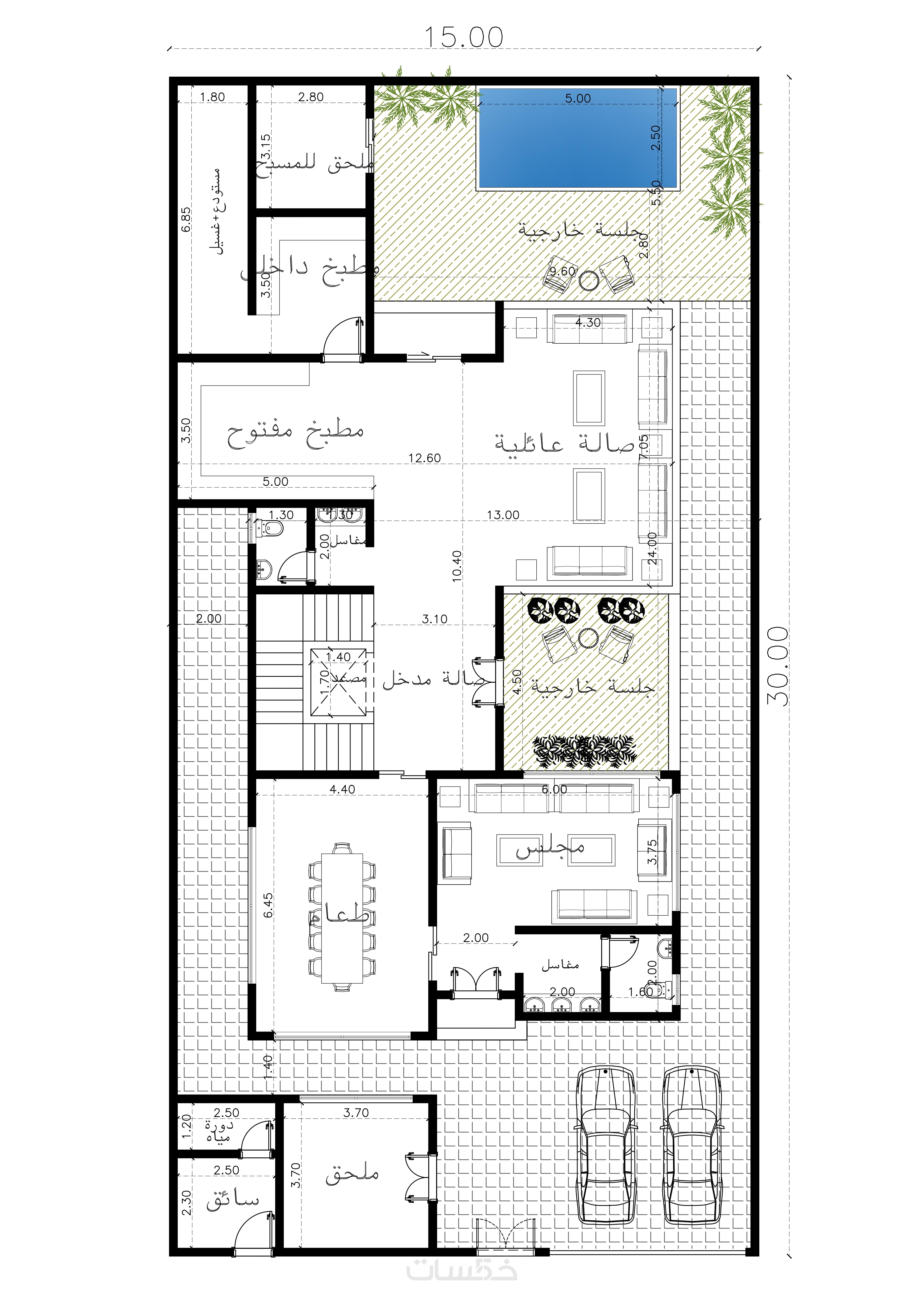 التصميم يراعي الكود والقوانين في المنطقة مع مراعاة العلاقات الوظيفية وعمل تصميم يسهل الحياة داخل الوحدة ويراعي الخصوصية والثقافة المجتمعية
