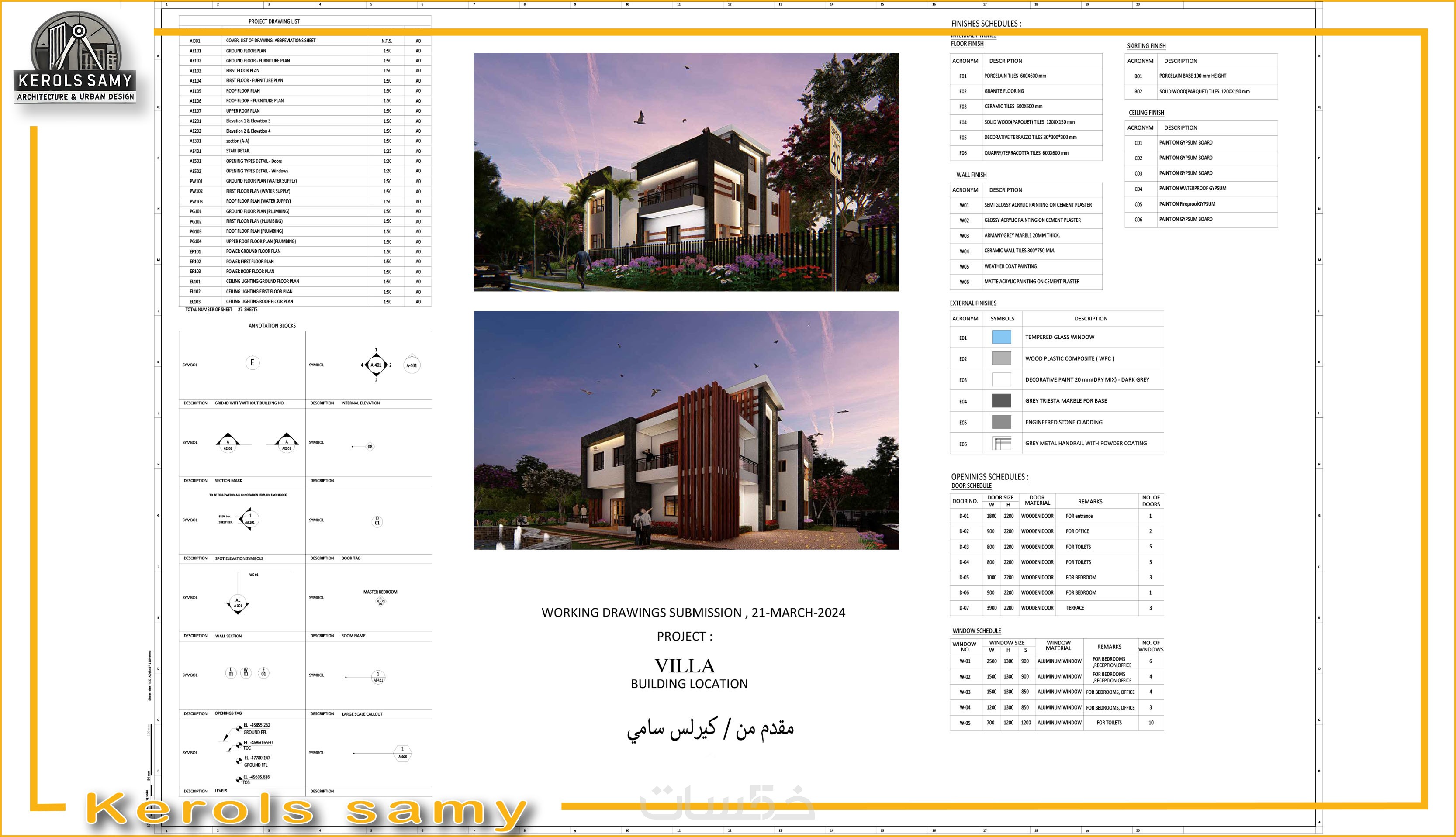 تحويل التصميم المعماري الي رسومات تنفيذية تشمل التفاصيل لكل عنصر . حتي 100 متر مربع ,