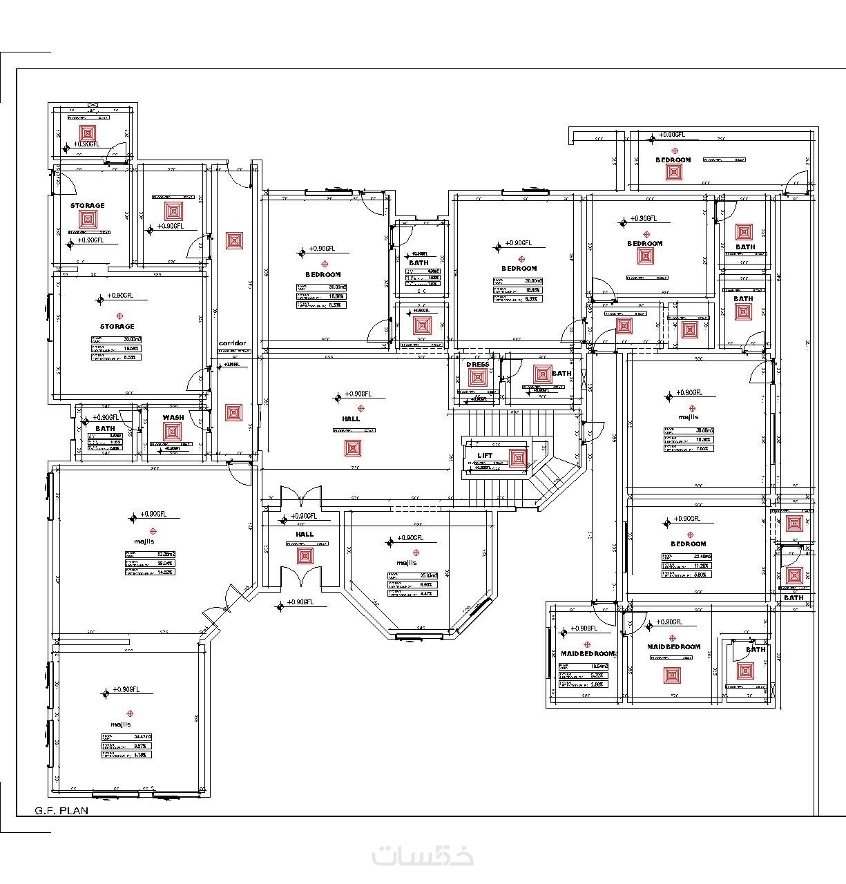 مخططات أرضية (Floor Plans) لفيلات، شقق، أو مباني تجارية.
