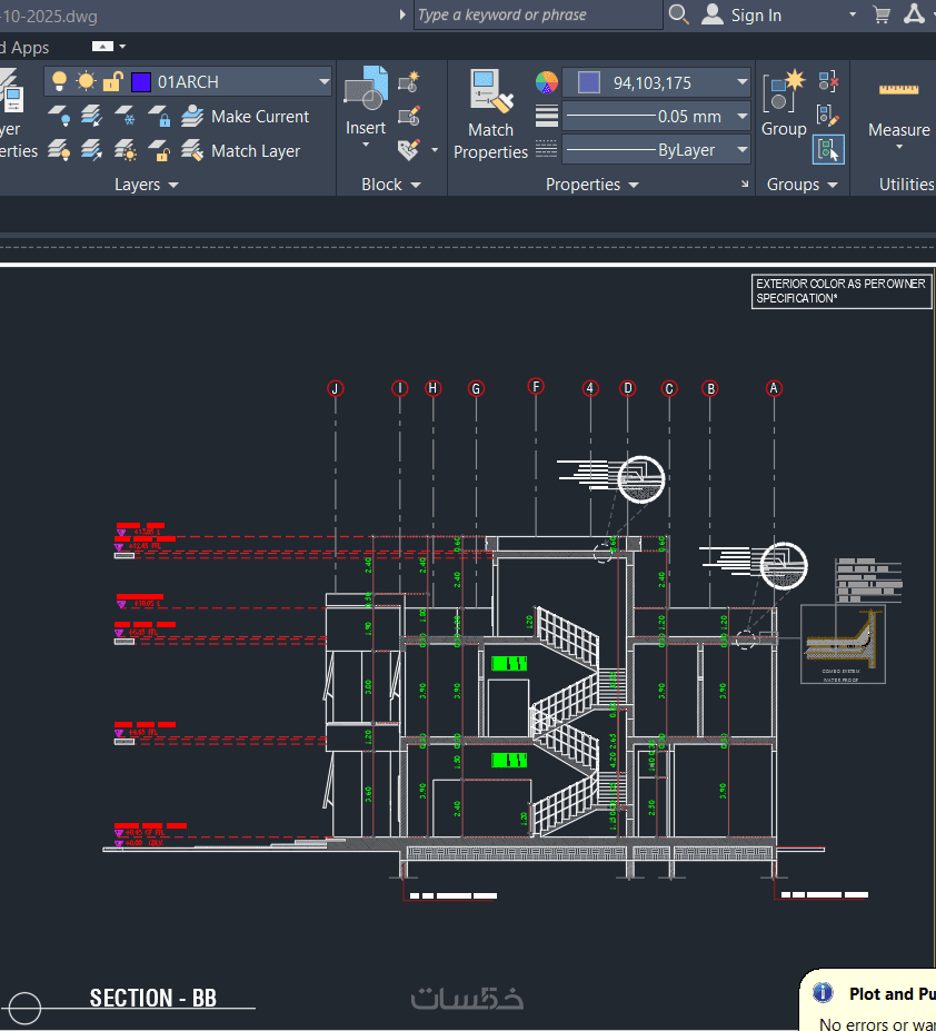 واجهات خارجية وداخلية (Elevations & Sections).