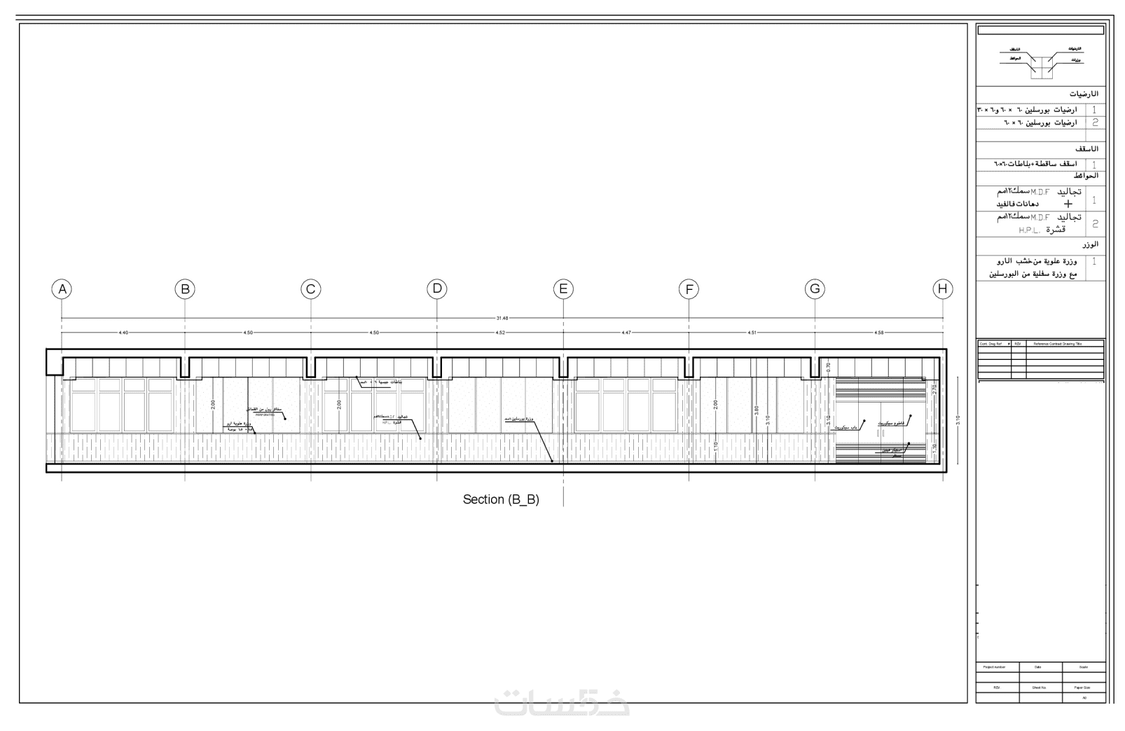 - مع أخذ القطاعات المطلوبة التي تبرز التصميم من الداخل