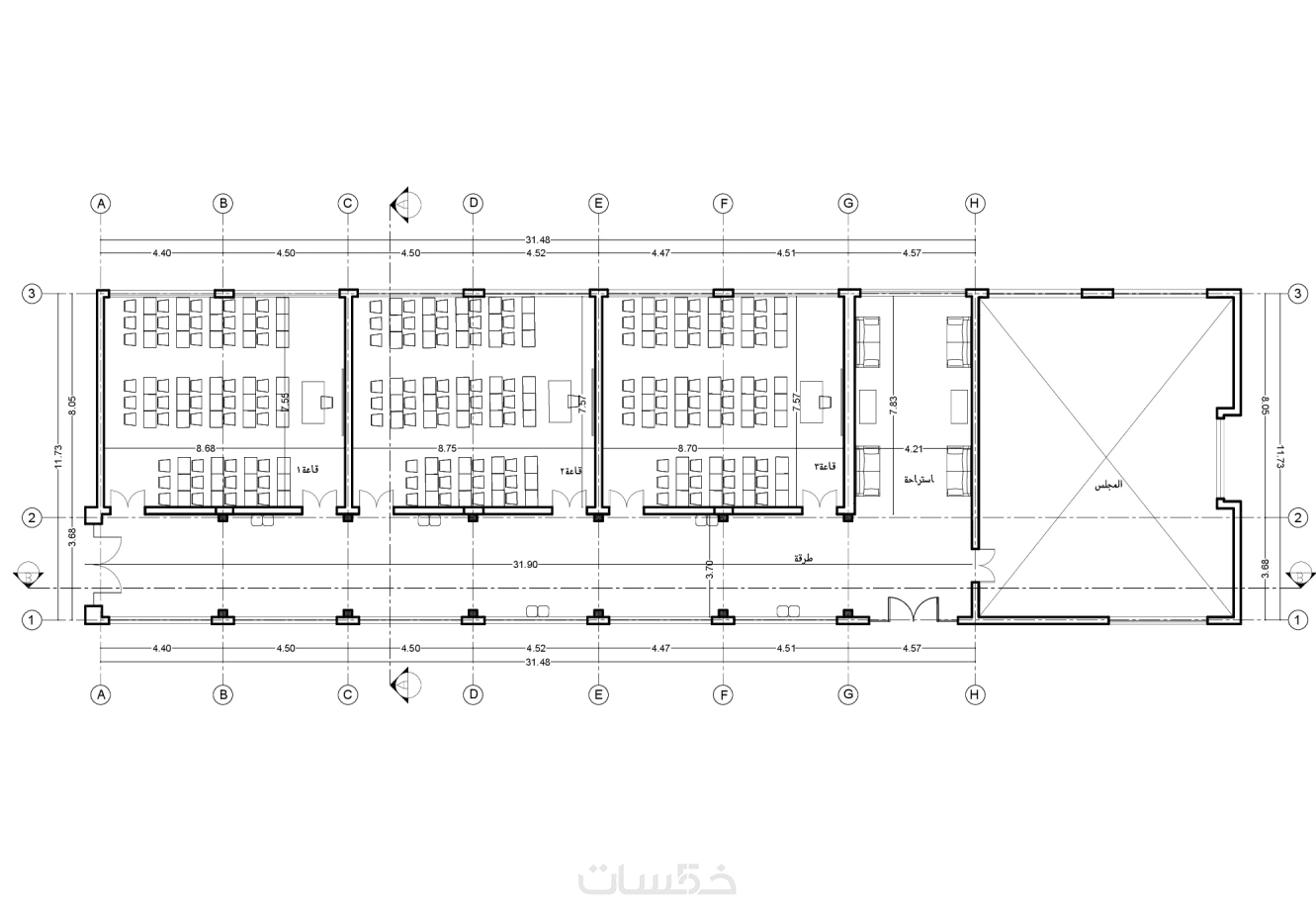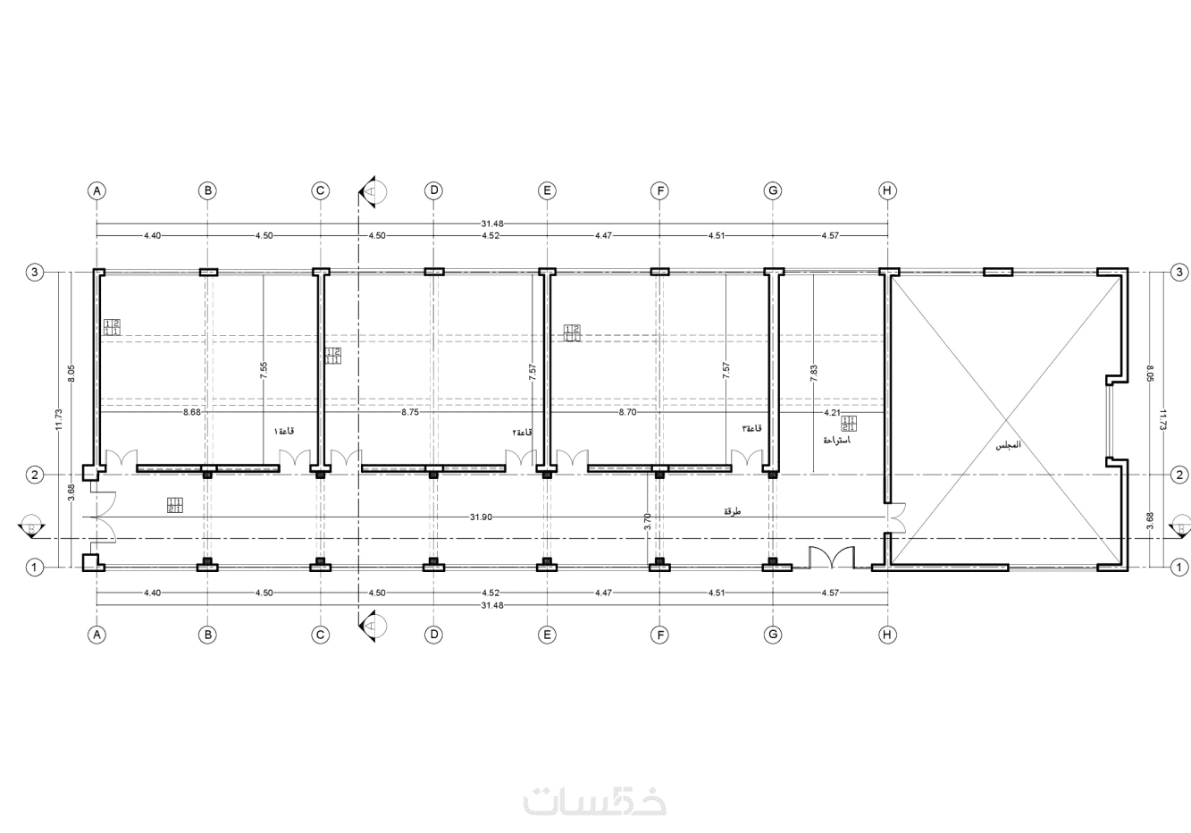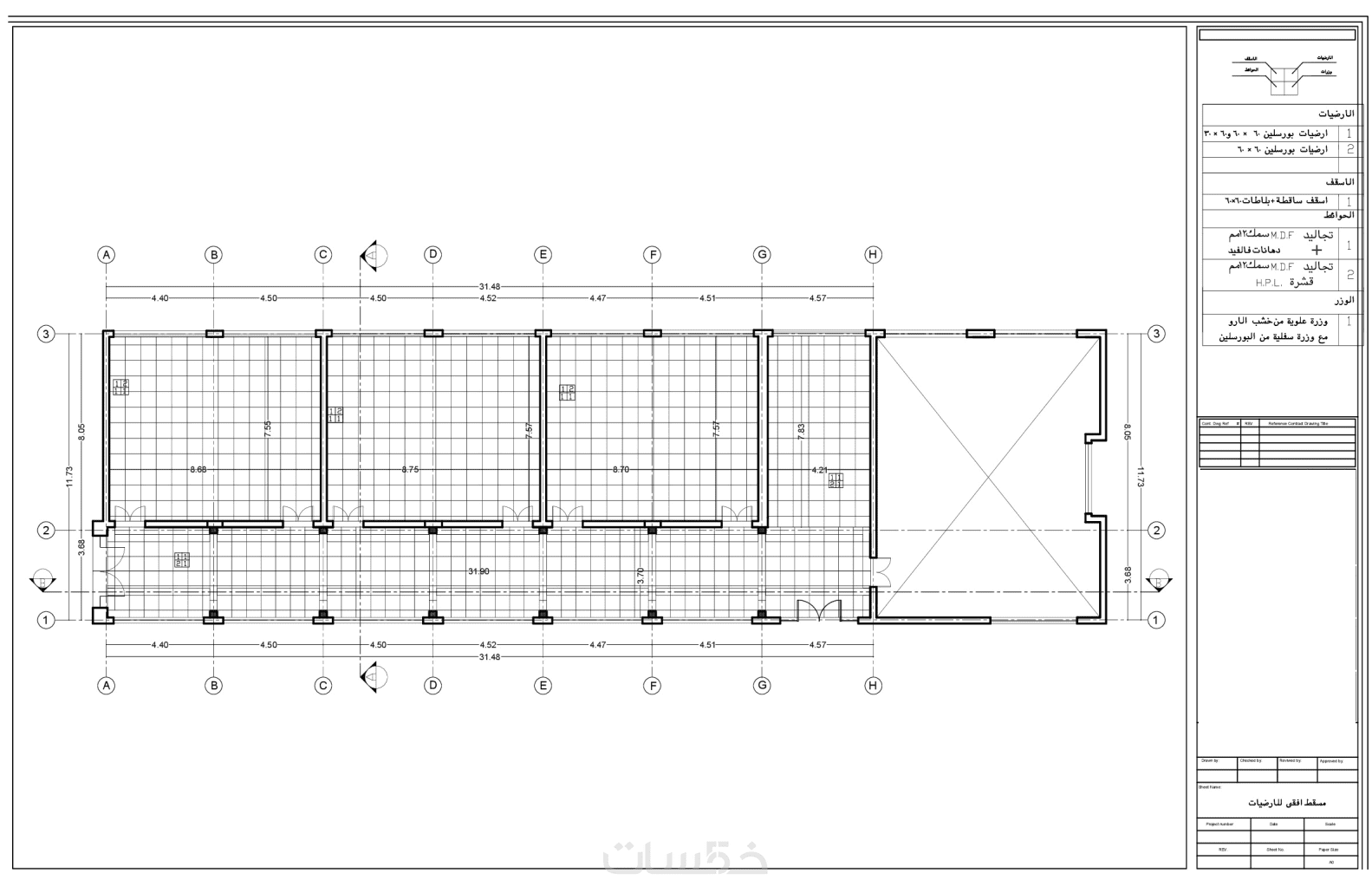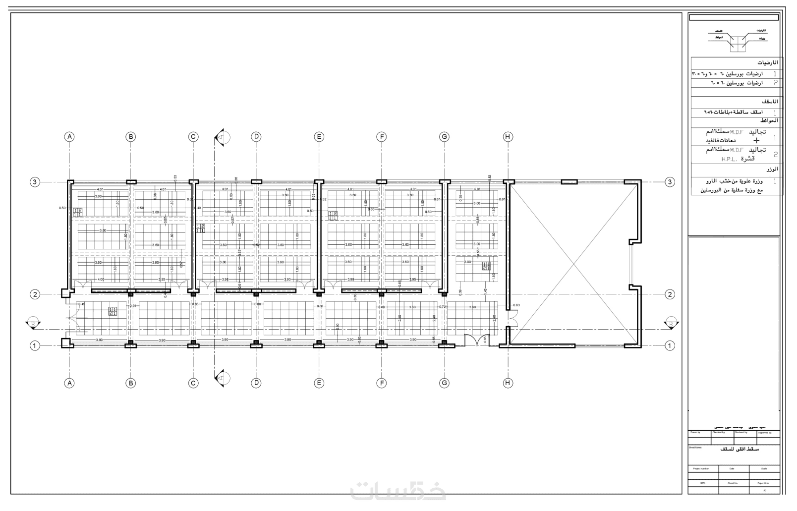 - رسم المساقط الأفقية لكافة أدوار المبنى (مساقط عامة - أرضيات - أسقف - الفرش)
