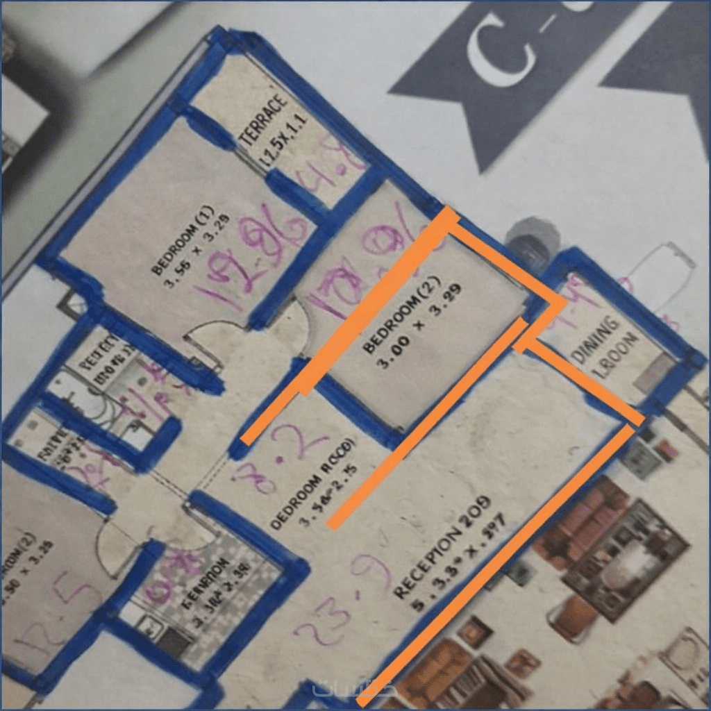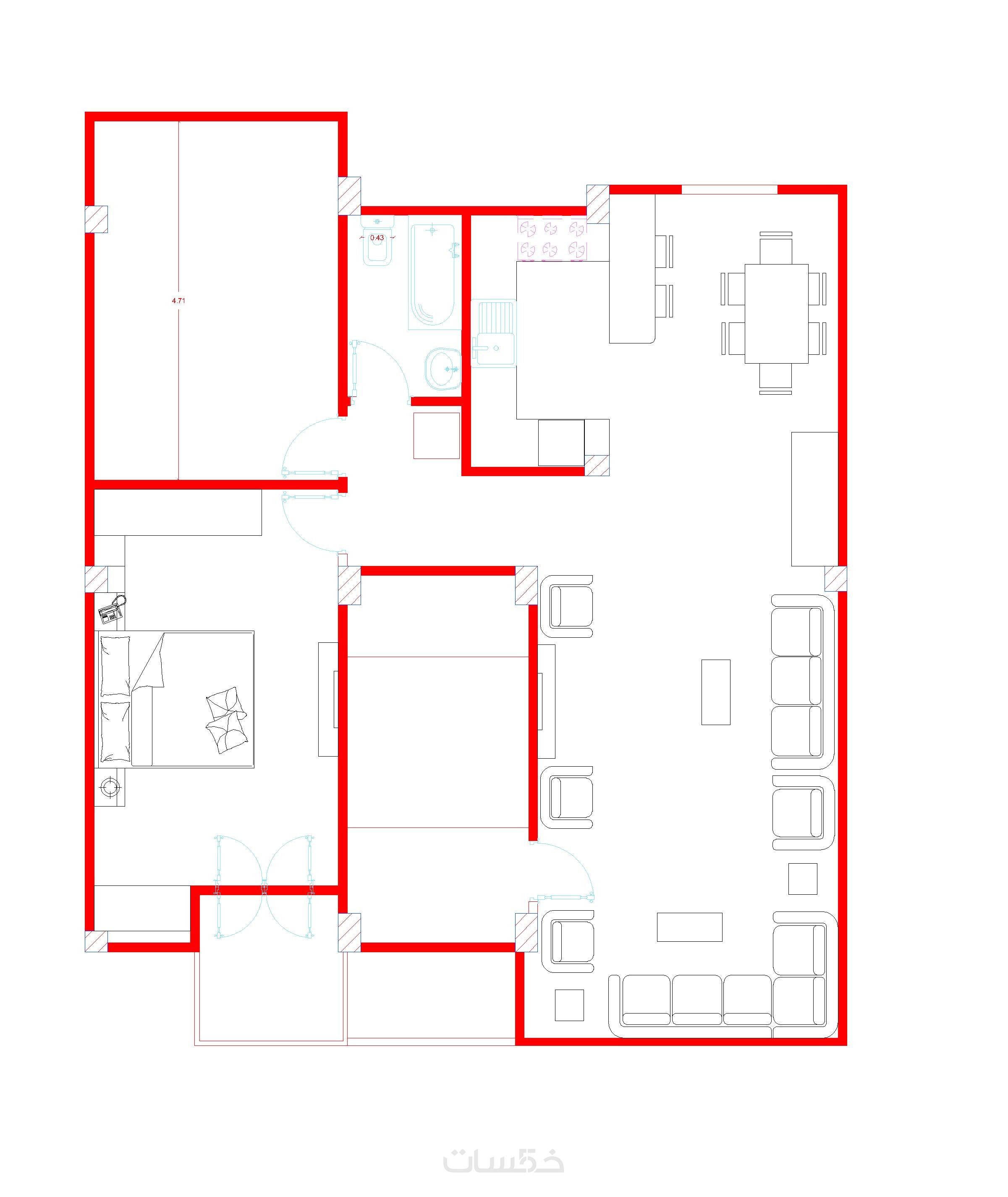 اضافة تصميم مساحة 100 م2 على الخدمة الرئيسية