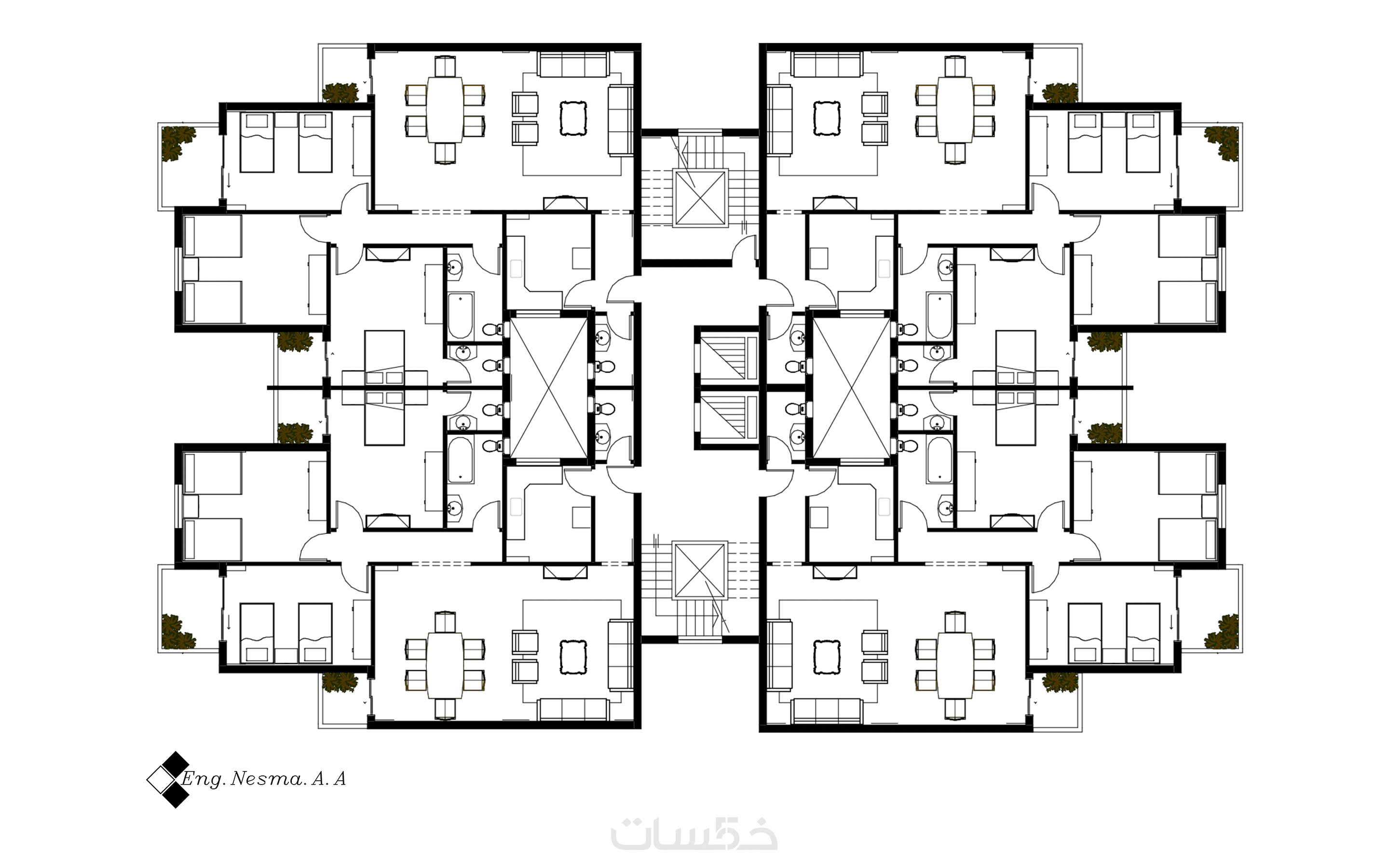 _ تصميم بلان معماري متكامل بمساحة تصل إلى 100 متر مربع.