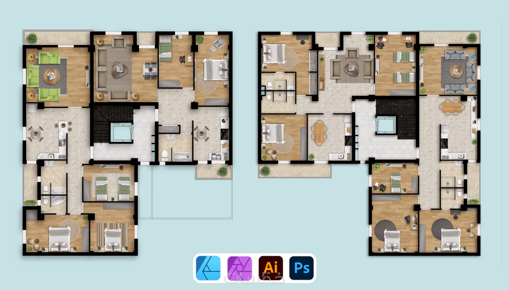 في هذه الخدمة سوف أقوم بإظهار وتلوين مخططاتك المرسومة عن طريق برامج التصميم الجرافيكي (استعمل عادة برنامج affinity designer لإنجاز مختلف أعمالي مع امكانية استعمال الفوتوشوب).
