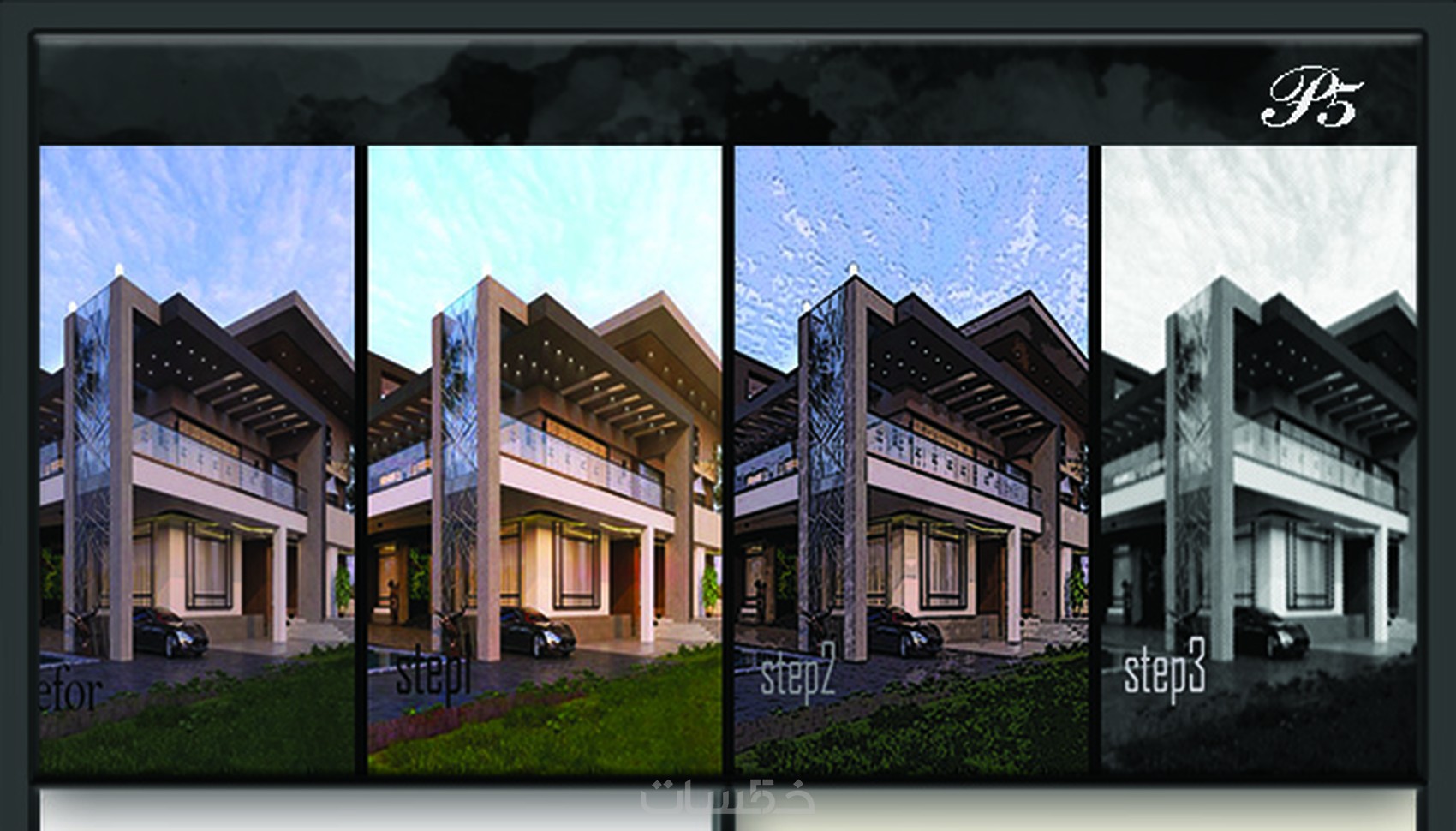 هذه احدا طرق الاظهار برنامج الفوتوشوب لاظهار المشاريع الهندسيه وهيا طريقه جريئه حيث استخمت فيها الاواد الداكنه وهيا من الابيض حتي الاسود مرورا بدراجات الرمادي .