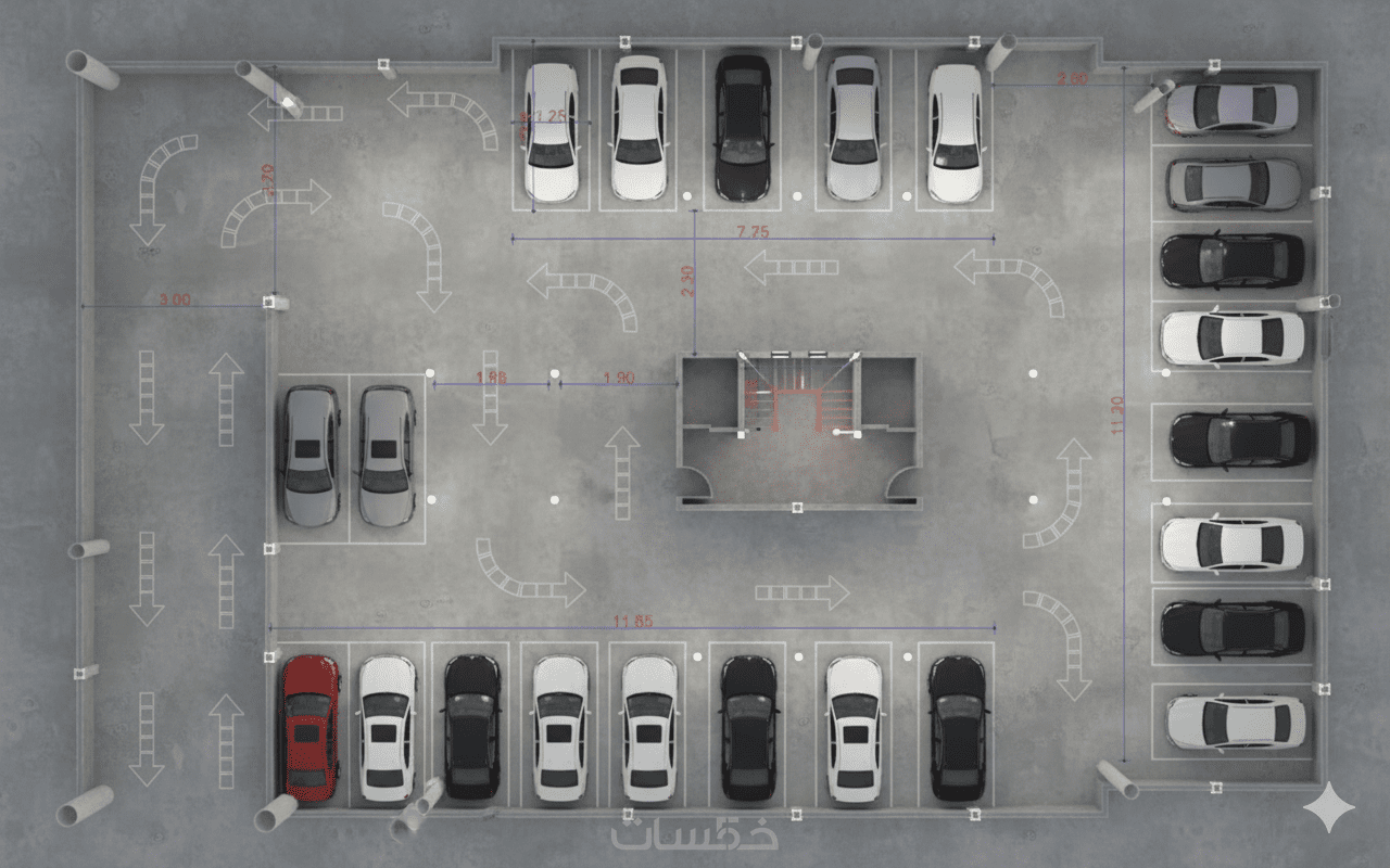 • توزيع الظلال والإضاءة لإعطاء واقعية وعمق للمخطط.