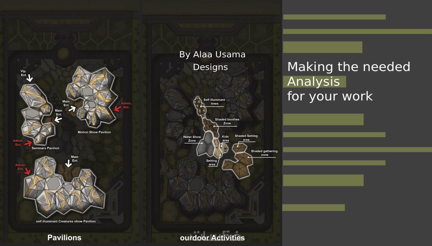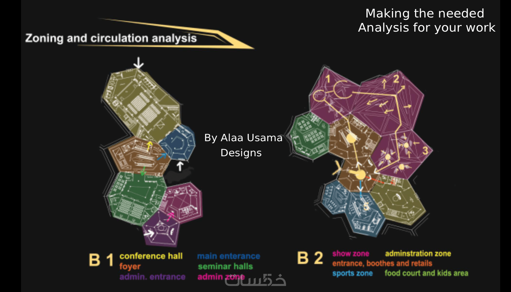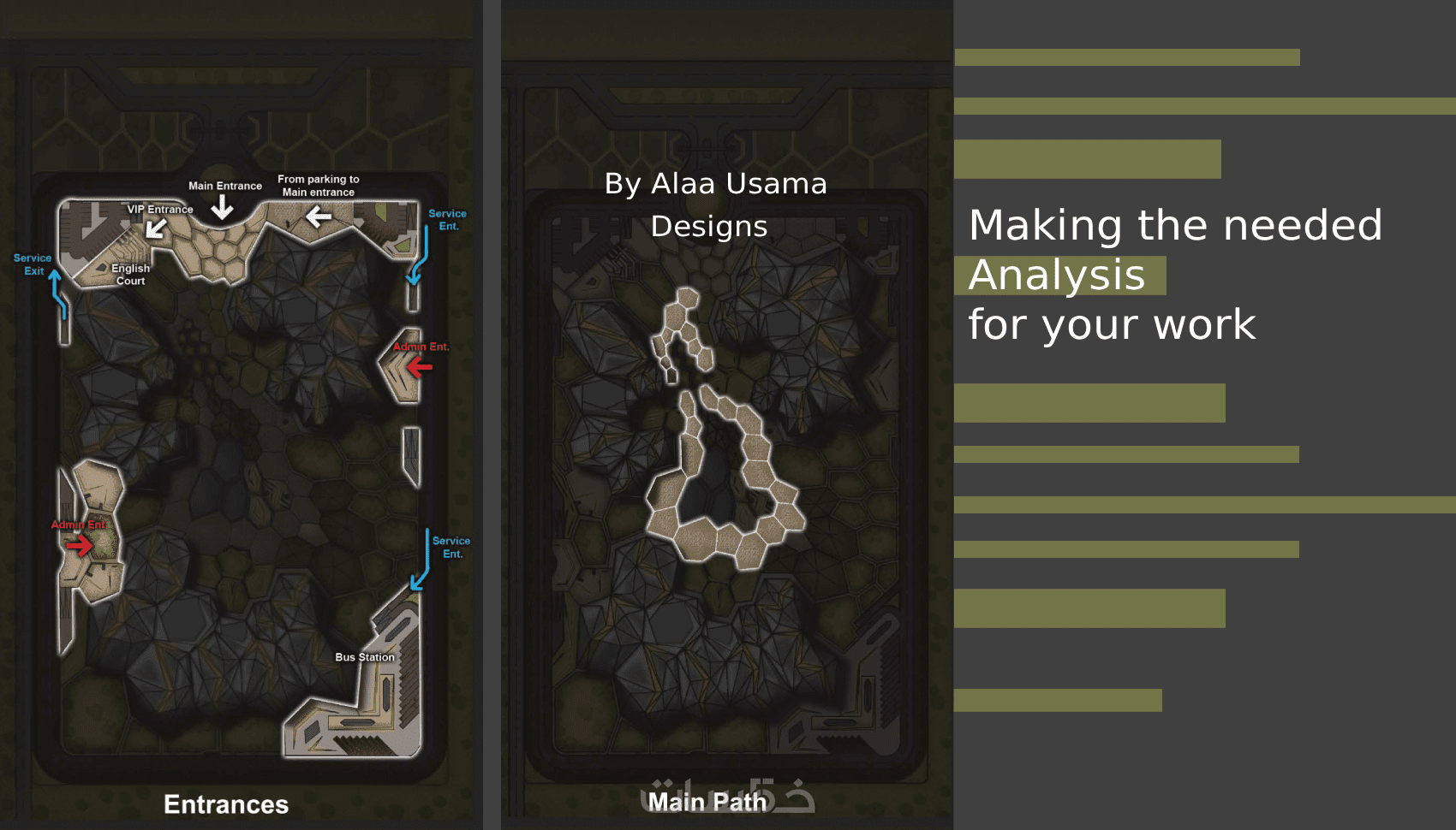 أماكن الدخول والخروج - أماكن الترفيه - مسارات الحركة - الخ.