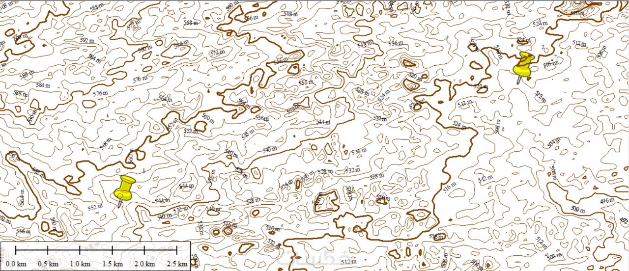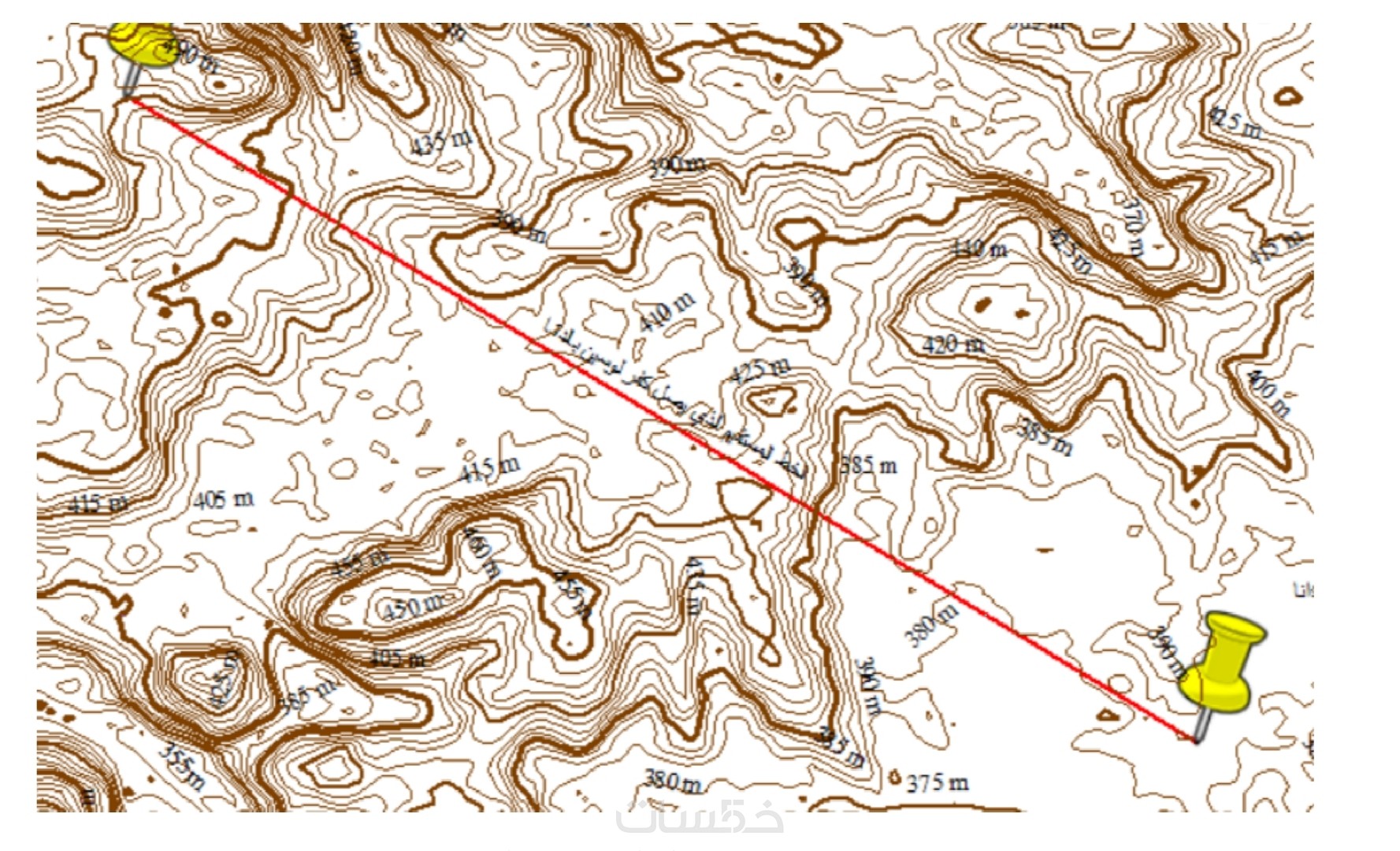 - خريطة تحتوي على خطوط الارتفاع والأبعاد