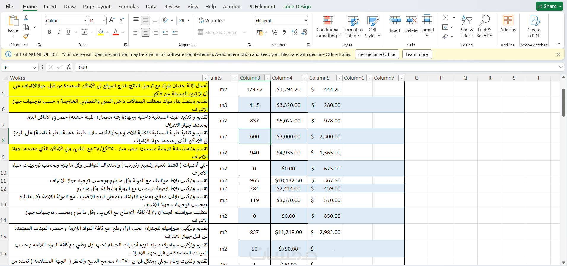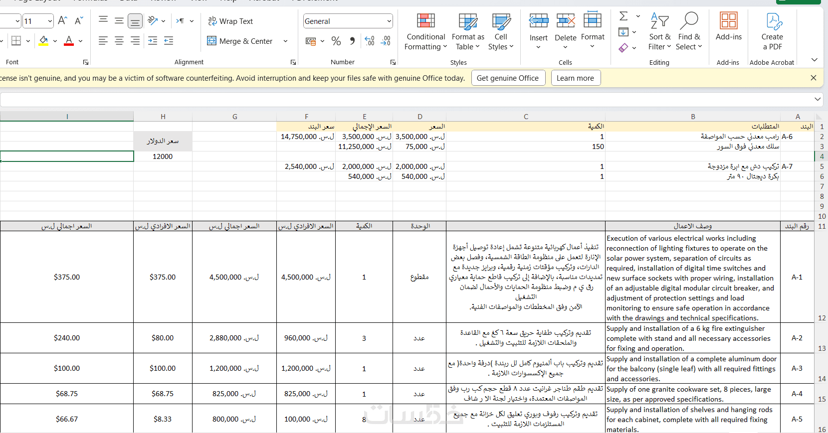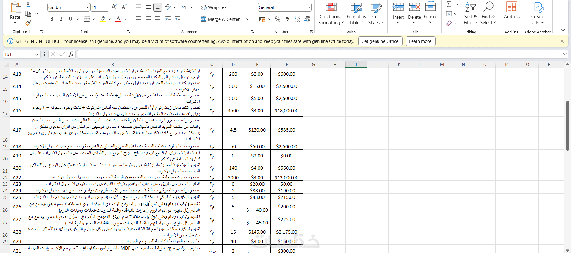 مستعد لعمل جداول تحليل اسعار للبنود و تبين كلفة المشروع التقديرية بناءاً على بنود الأعمال .