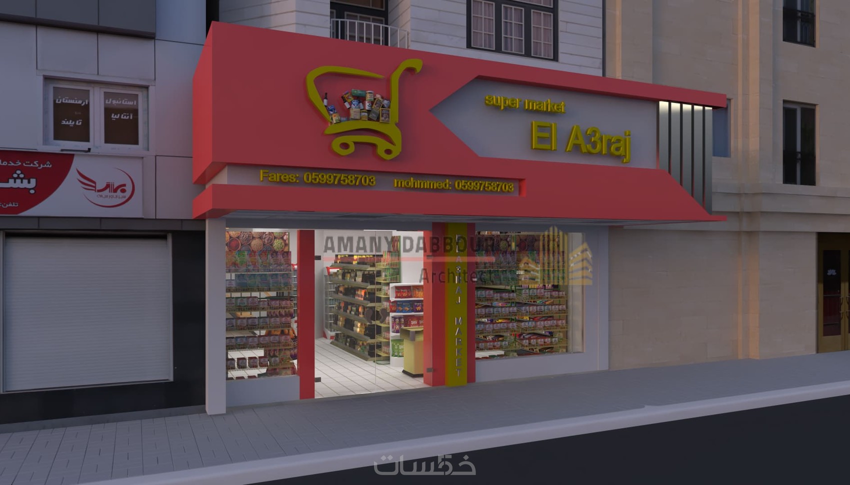 -اعادة تصميم واجهات لكافة المباني والمراكز التجارية( بقالة صغيرة - سوبر ماركت- محلات تجارية- مول تجاري,,,) مقابل خدمة