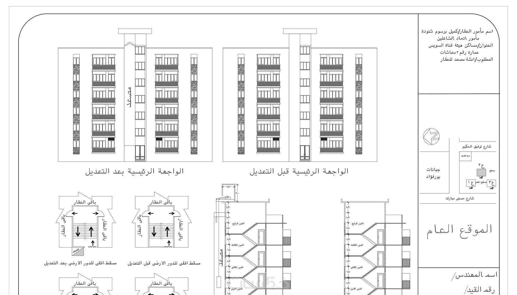 سيحصل العميل على تصميم معماري للواجهات والمساقط لاي شقة او محل للتقديم لرخص المحلات او التصالحات الحكومية مع امكانية التعديل في الرسم الهندسي وعمل كل ما هو مطلوب بضمان تنفيذ الخدمة في اسرع وقت واقل تكلفة وحجم العمل : كل تصميم بسعر خدمة اي ان اذا كانت اللوحة الهندسية بها عدد 2 تصميم (مسقط افقي وواجهة على سبيل المثال ) سيدفع العميل 10 دولار واذا ازداد عدد التصاميم عن ذلك يقل سعر التصميم الواحد بما يتناسب مع عدد التصاميم