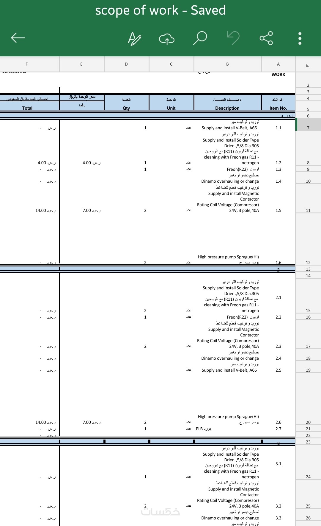 ستحصل على ملف اكسل و pdf يتضمن حصر كميات لجميع أنواع الأعمال الكهربائية مع امكانية التعديل و إضافة الأسعار للحصول على الكلفة الاجمالية