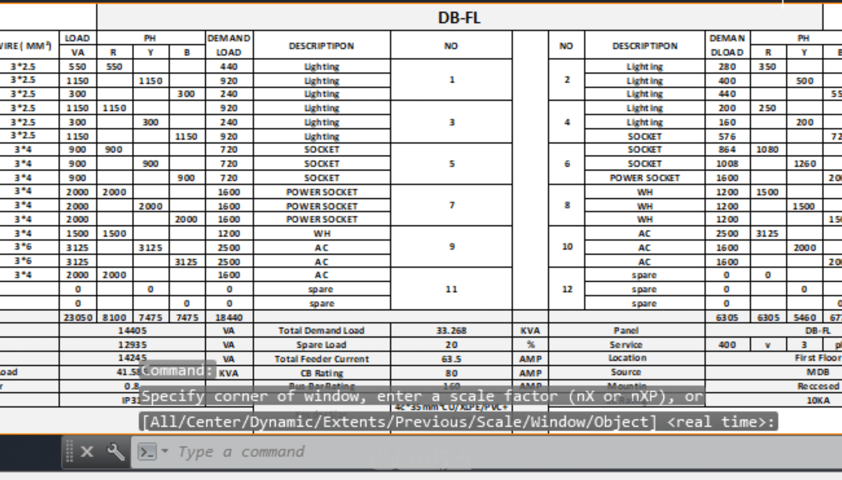 بانل سكدويل بها تصميم اتزان الاحمال علي 3 فازات