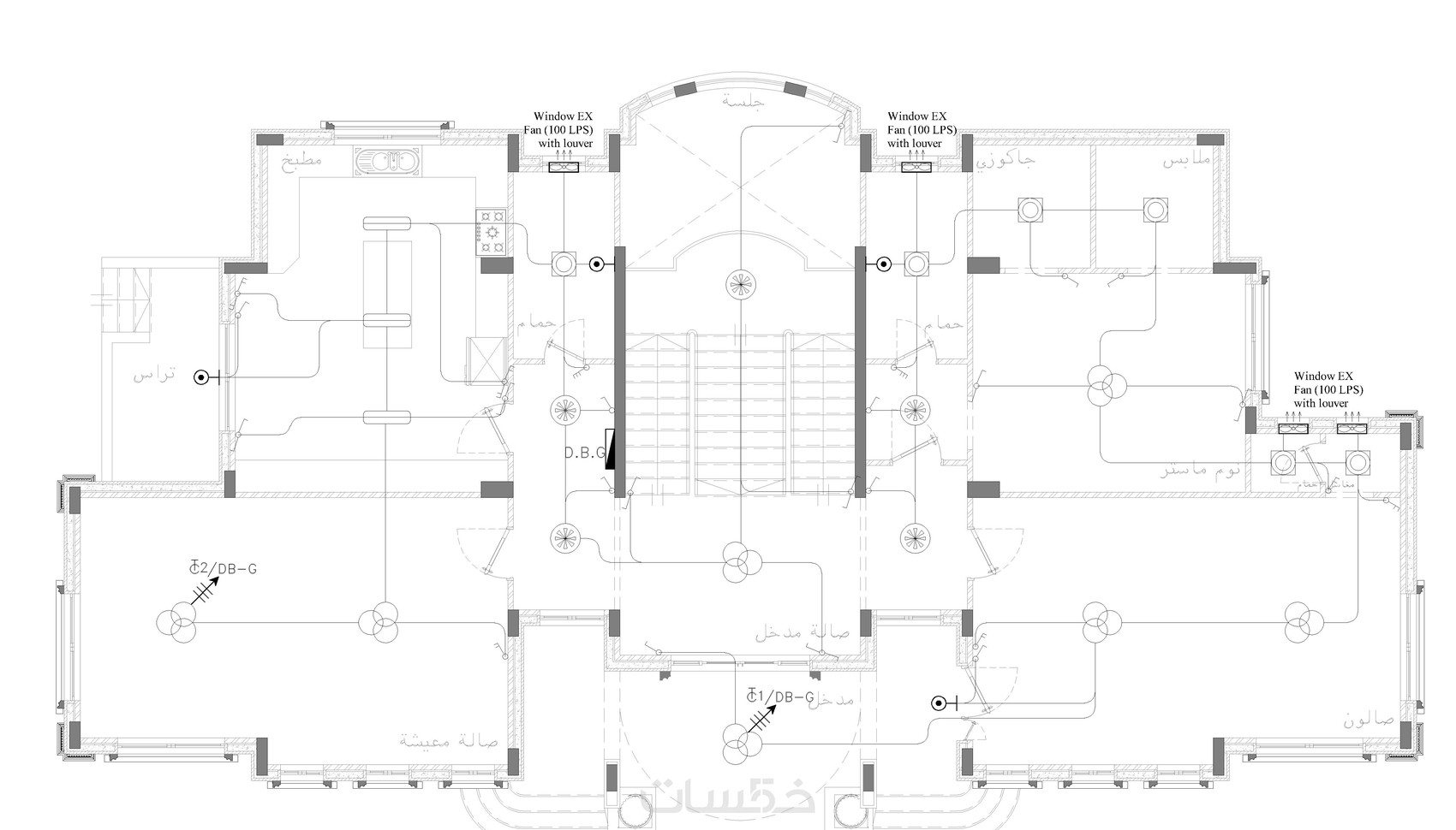 - يتم رسم المخططات على برمجية AutoCAD و بصورة دقيقة للغاية مع مراعاة احجام القطع الكهربائية .