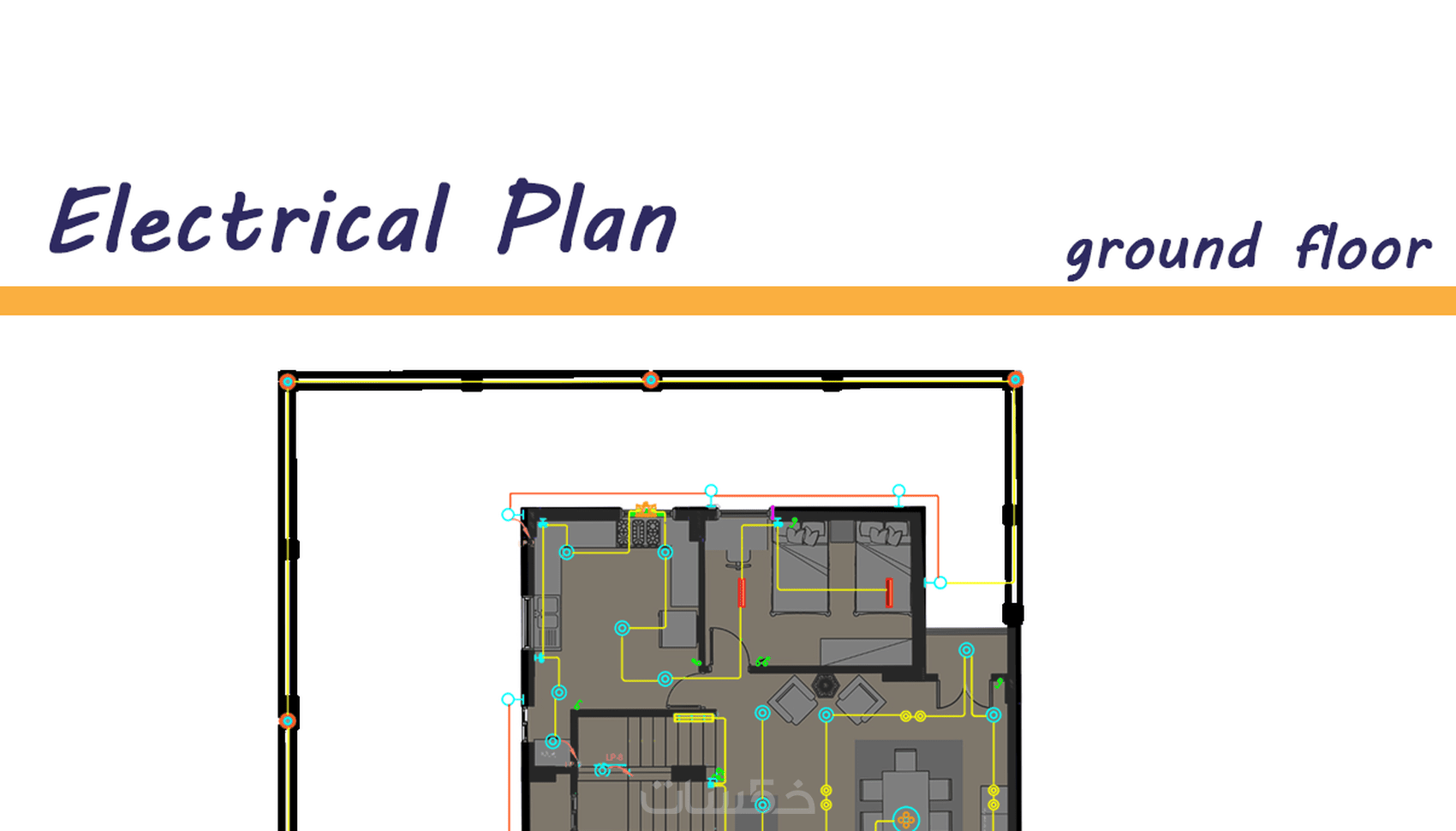 * تصميم مخططات الكهرباء(إنارة , باور , تكييف,كابلات , تيار خفيف , كاميرات مراقبة ... إلخ) ببرنامج الاتوكاد