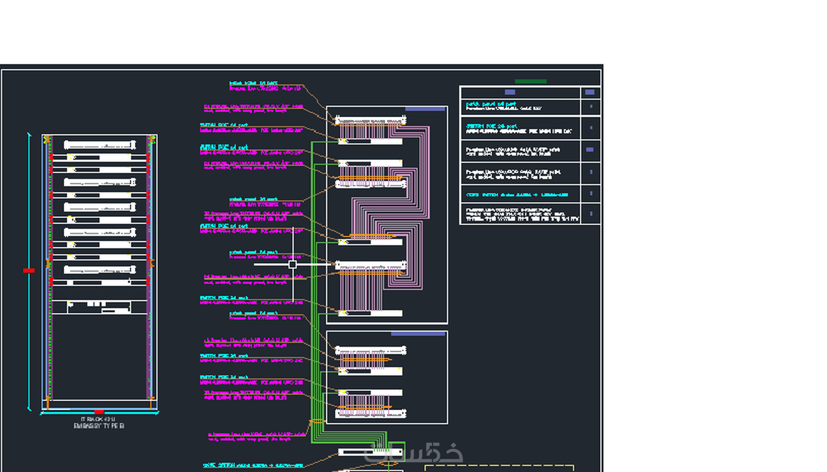 - اعداد الرسومات التصميمة والتنفيذية لجميع انظمة التيار الخفيف من fire alarm - cctv - sound sys - access control - data - telephone - iptv - nurse call - master watch - introsion sys - queening sys ...... etc