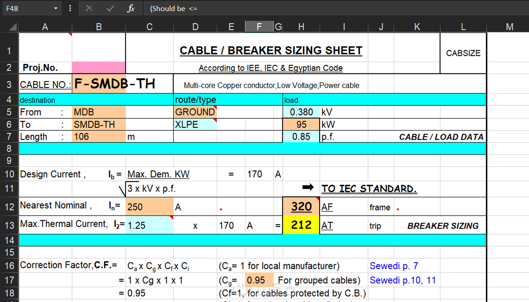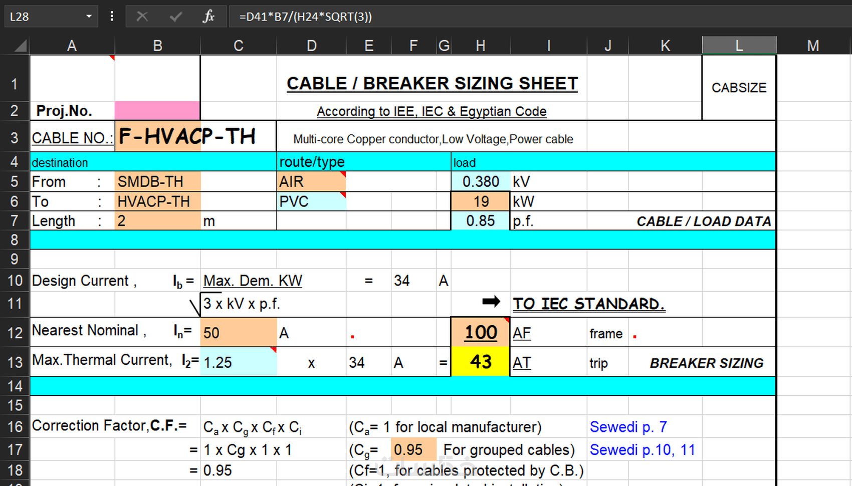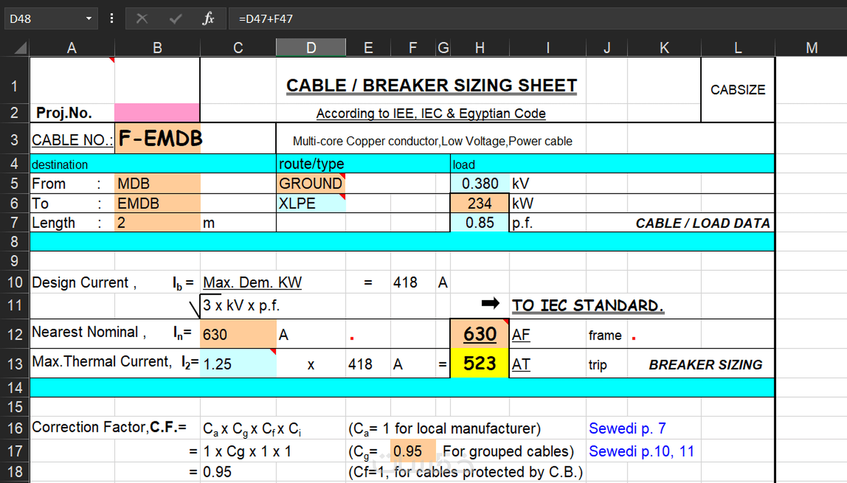✔ عمل حسابات الكابلات وتحديد الكابلات المناسبة (Cable Sizing)