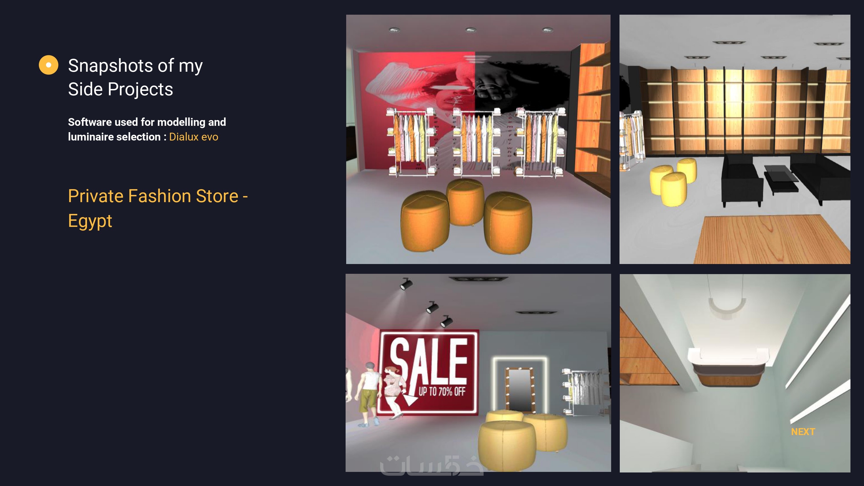 أقدّم لك خدمة متكاملة لتصميم الإضاءة والدراسات الضوئية الداخلية والخارجية باستخدام برنامج Dialux evo المتخصص والمعتمد عالميًا في هذا المجال.