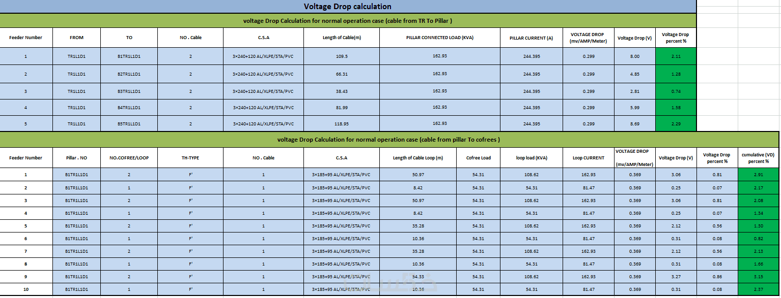 اعداد حسابات الانخفاض فى الجهد VD وتيار القصر SC