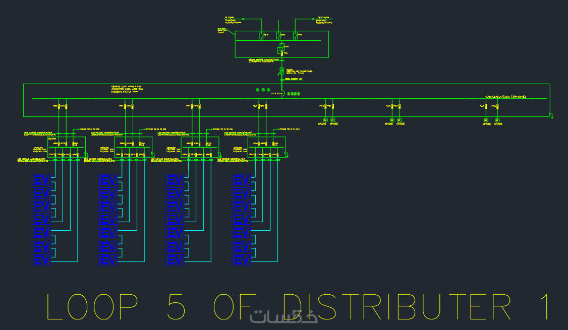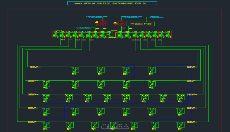 تصميم مخططات مسارات كابلات وعناصر نظام الجهد المتوسط MV(المحولTransformer-وحدة الربط الحلقىRMU-الموزعDistributor) وتحديد مواصفاتها