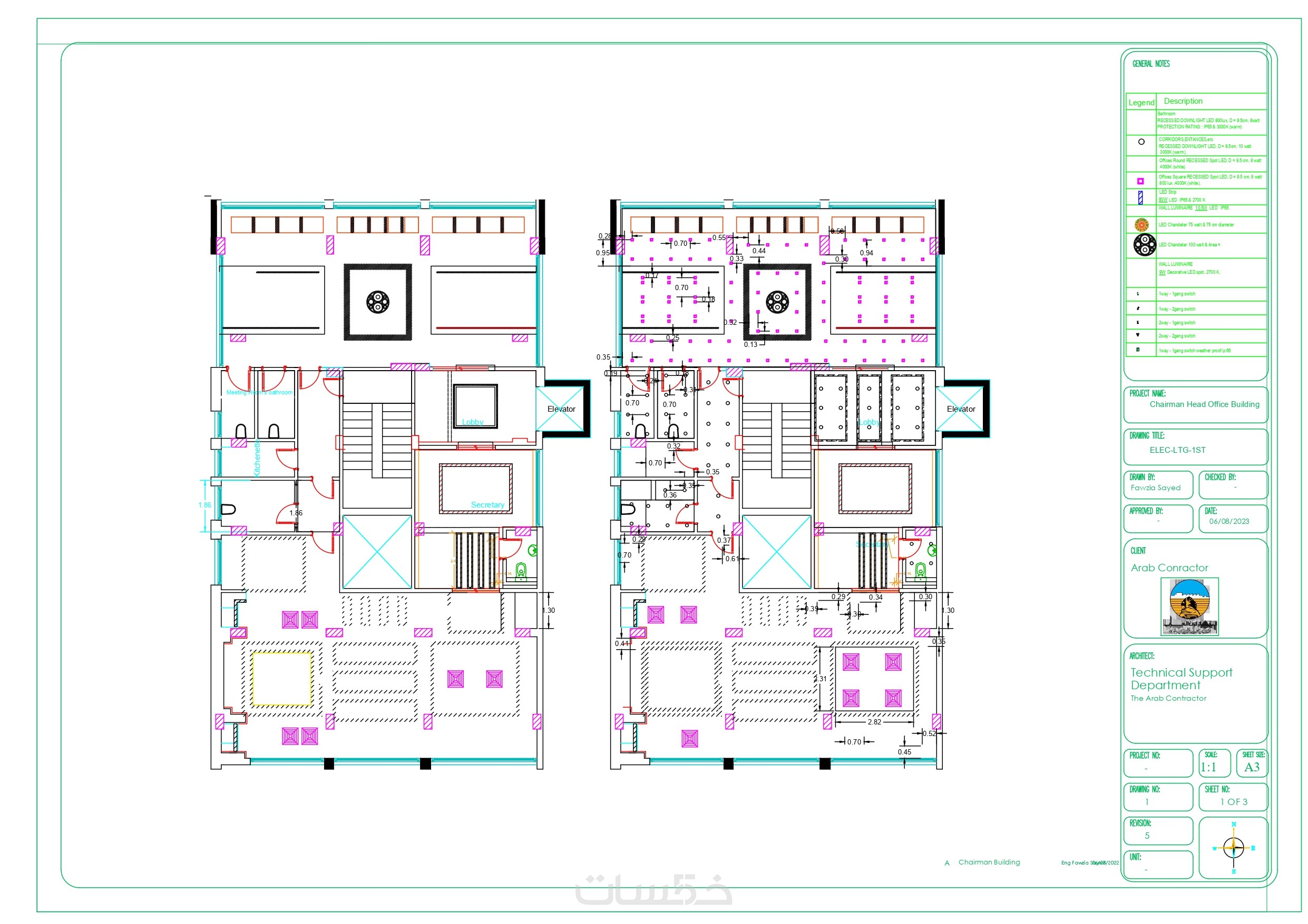 تصميم مخططات الإنارة، القوى، والأنظمة الضعيفة بدقة هندسية ووفق متطلبات المشروع.