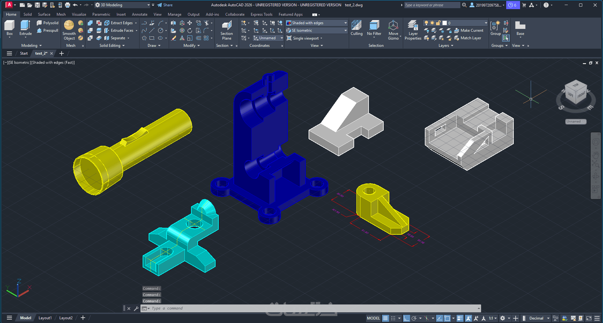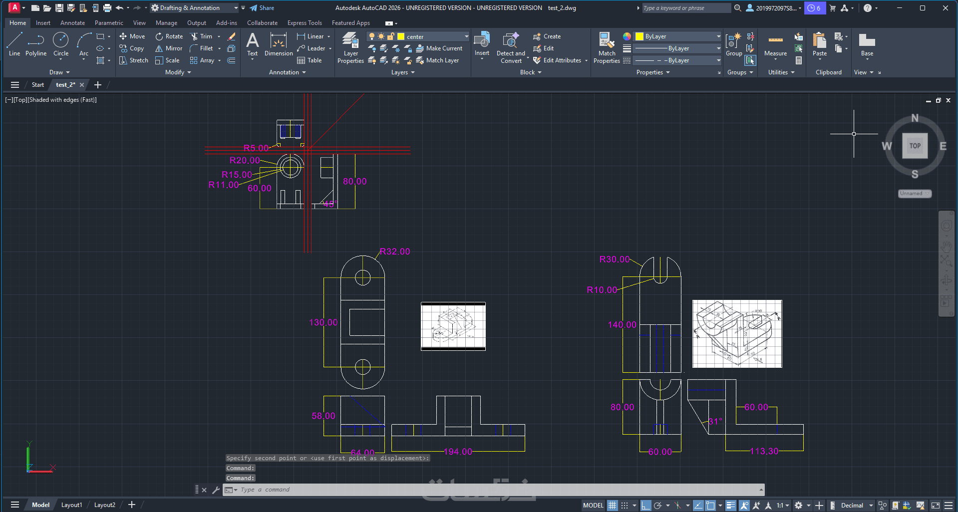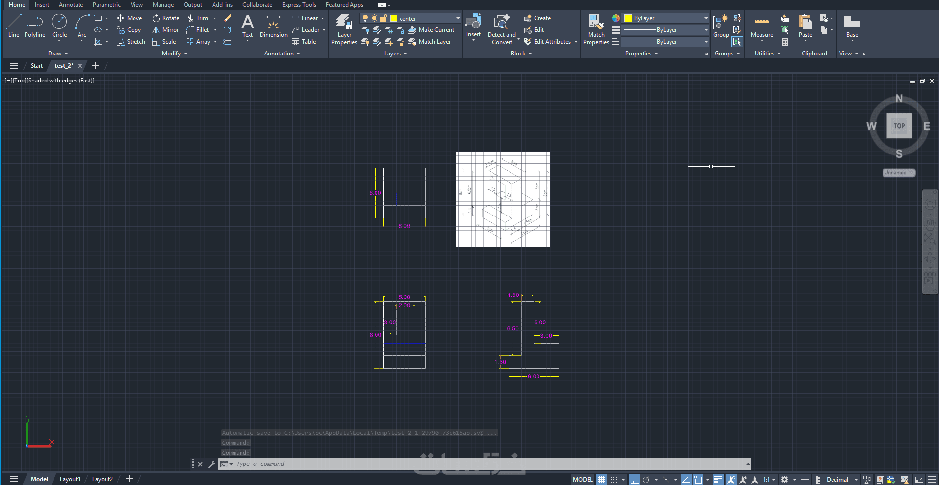 رسم أشكال هندسية ثنائية وثلاثية الأبعاد AutoCAD ومساقط