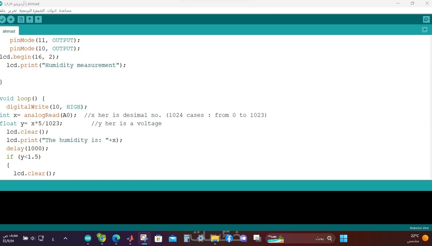 كتابة الكود باستخدام الأداة التالية حسب متطلبات المشروع: Arduino IDE.