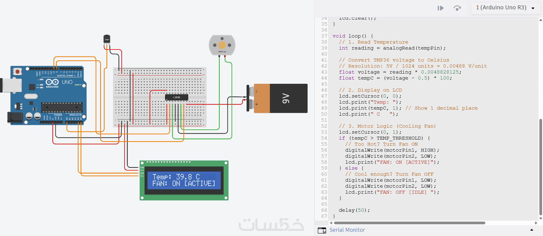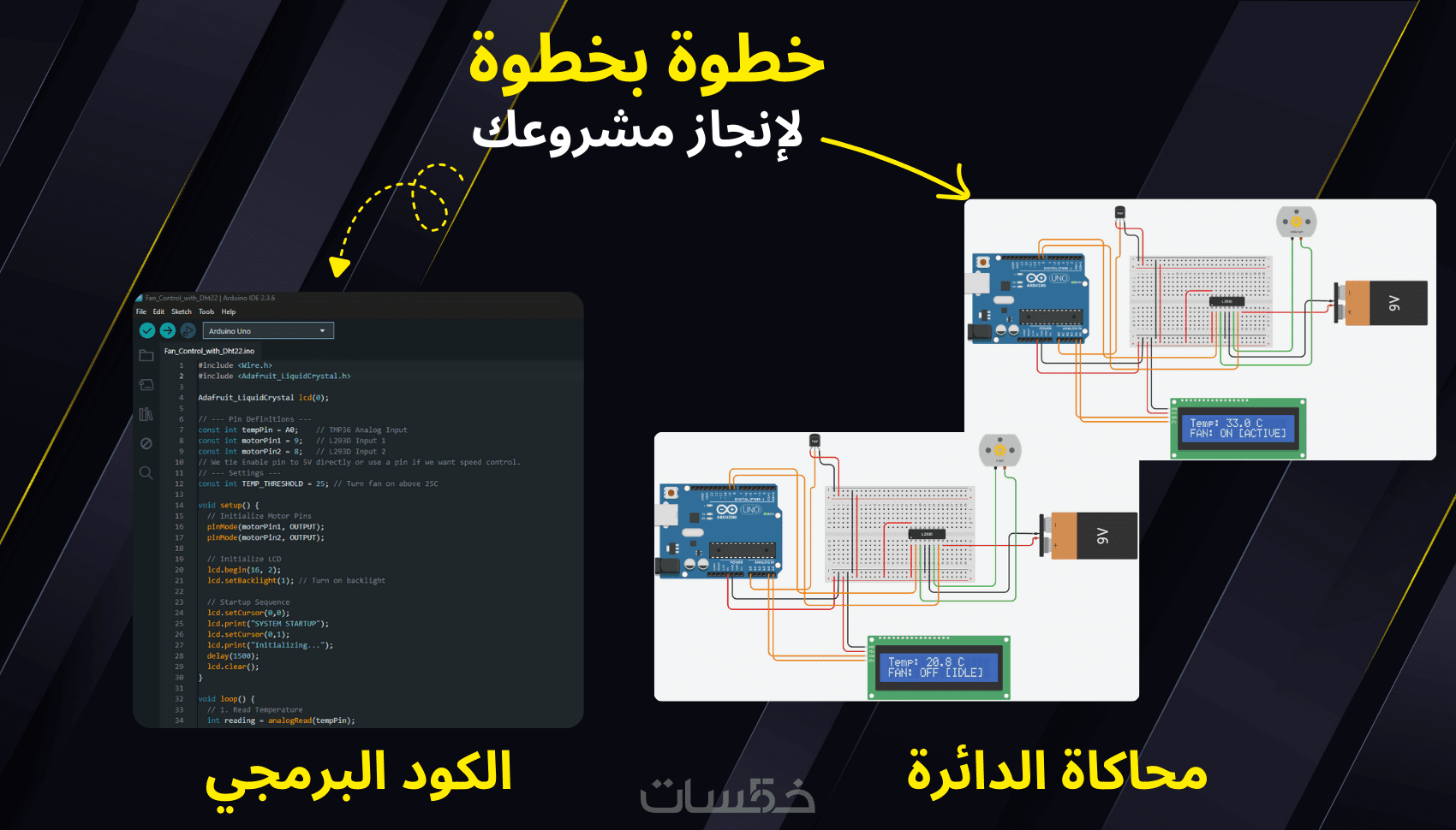 3. ملف المحاكاة (Simulation) لتعمل الدائرة افتراضياً قبل الشراء (Tinkercad / Wokwi).