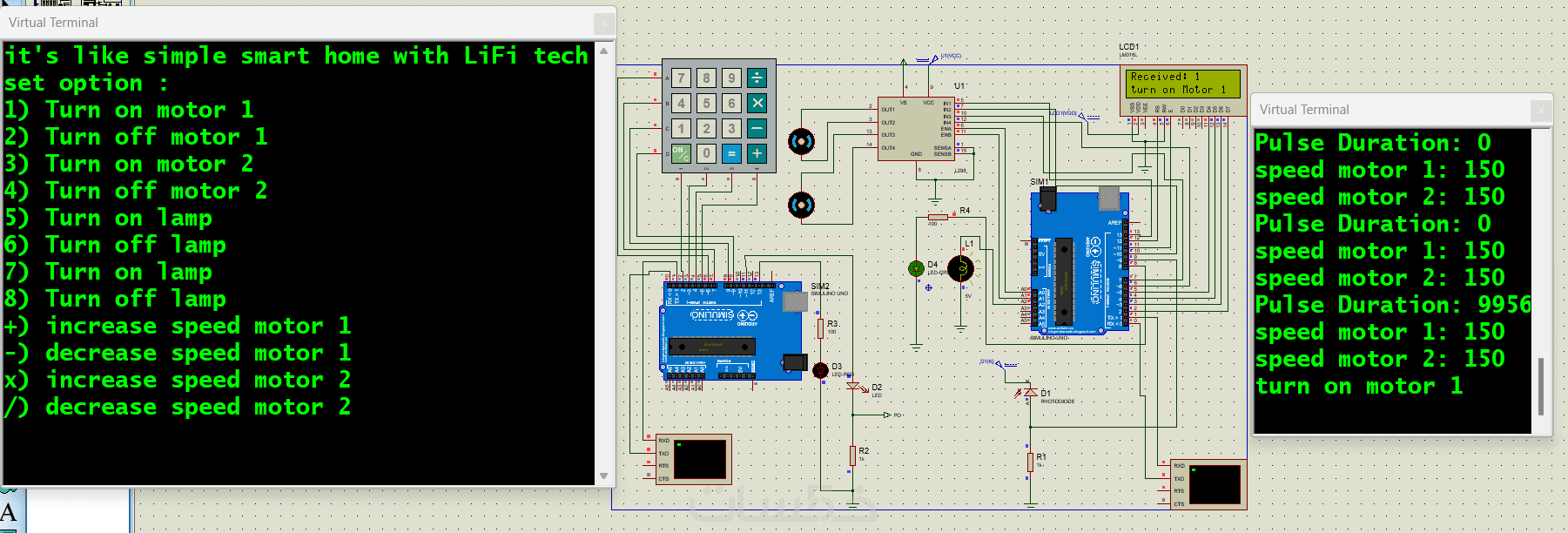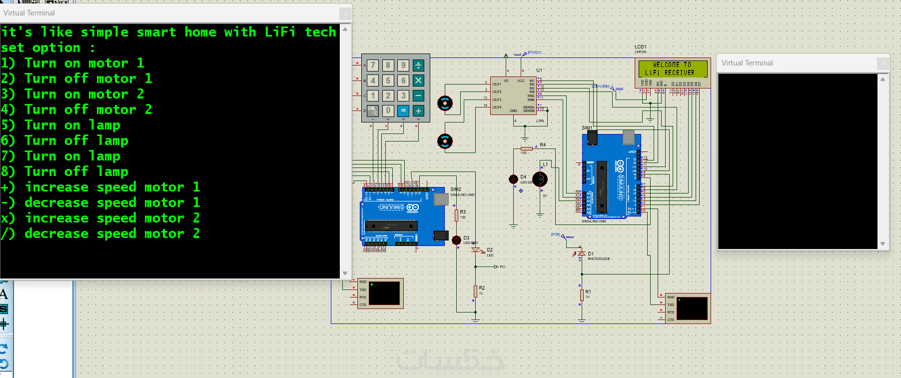 تصميم وتنفيذ نظام اتصال باستخدام تقنية Li-Fi (Light Fidelity)، وهي تقنية حديثة تعتمد على الضوء لنقل البيانات بدلًا من الترددات الراديوية مثل Wi-Fi وBluetooth. يهدف المشروع إلى بناء نظام يتيح التواصل بين وحدة إرسال (Transmitter) ووحدة استقبال (Receiver) باستخدام إضاءة LED، مما يوفر اتصالًا سريعًا وآمنًا داخل نفس البيئة.
