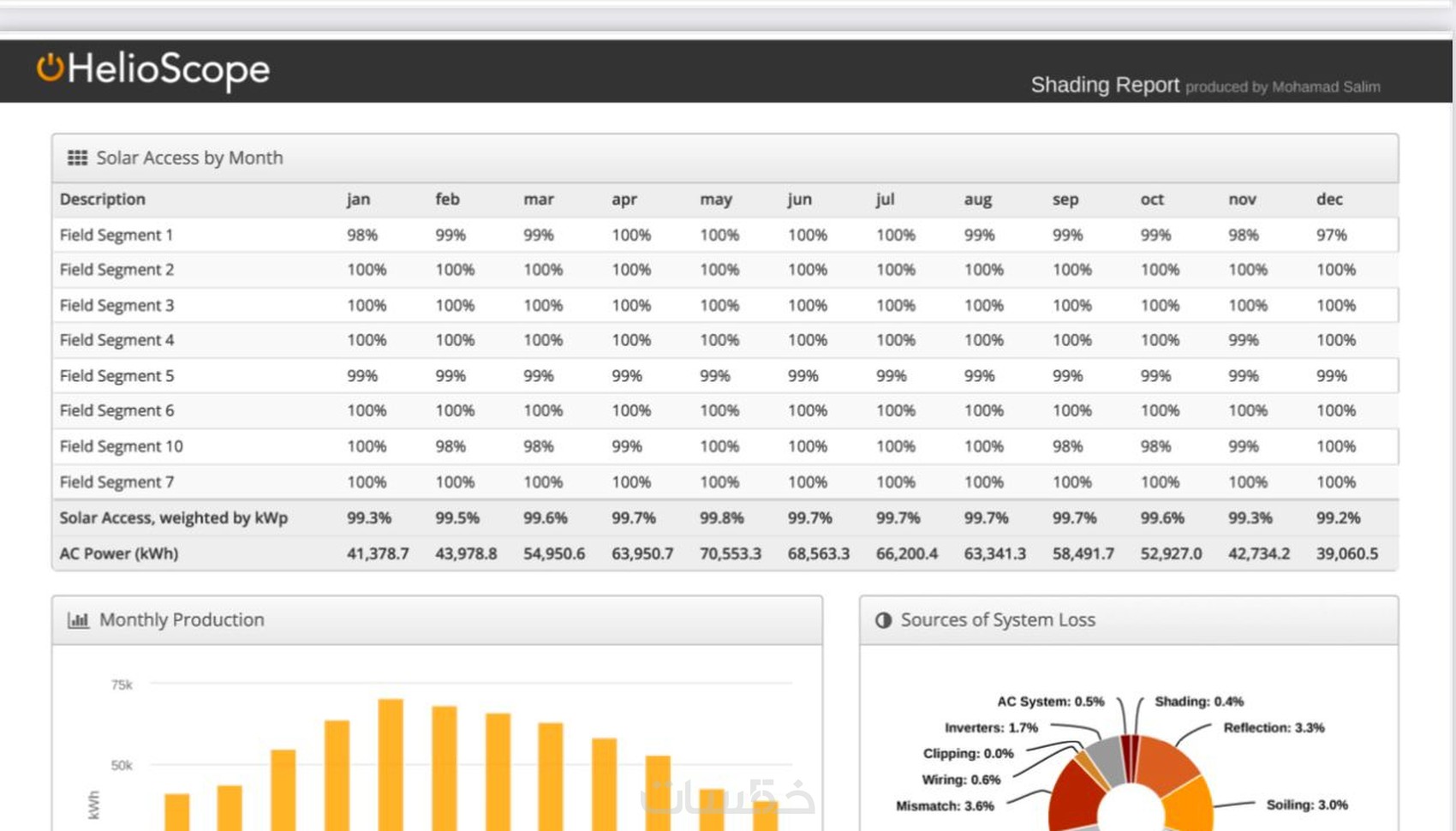 كمية الطاقة المتوقع إنتاجها شهريًا وسنويًا.