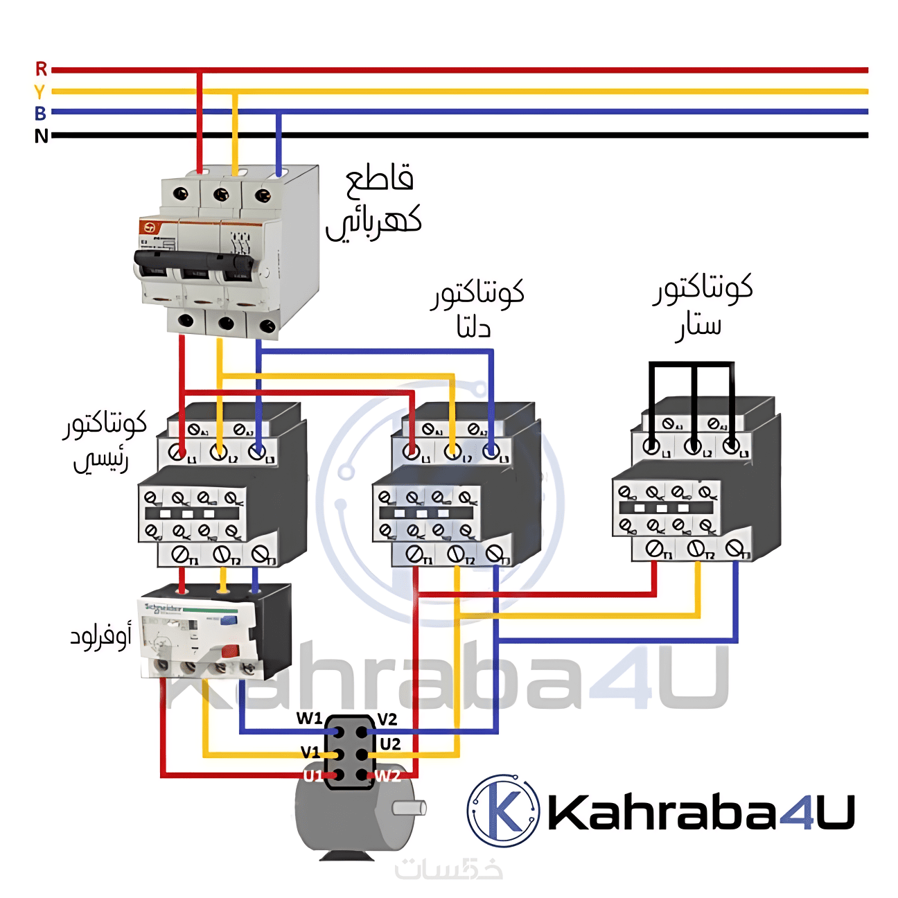 تصميم لوحة موتور أمامي/عكسي ب2 كونتاكتور مع شرح التوصيل وفكرة التشغيل