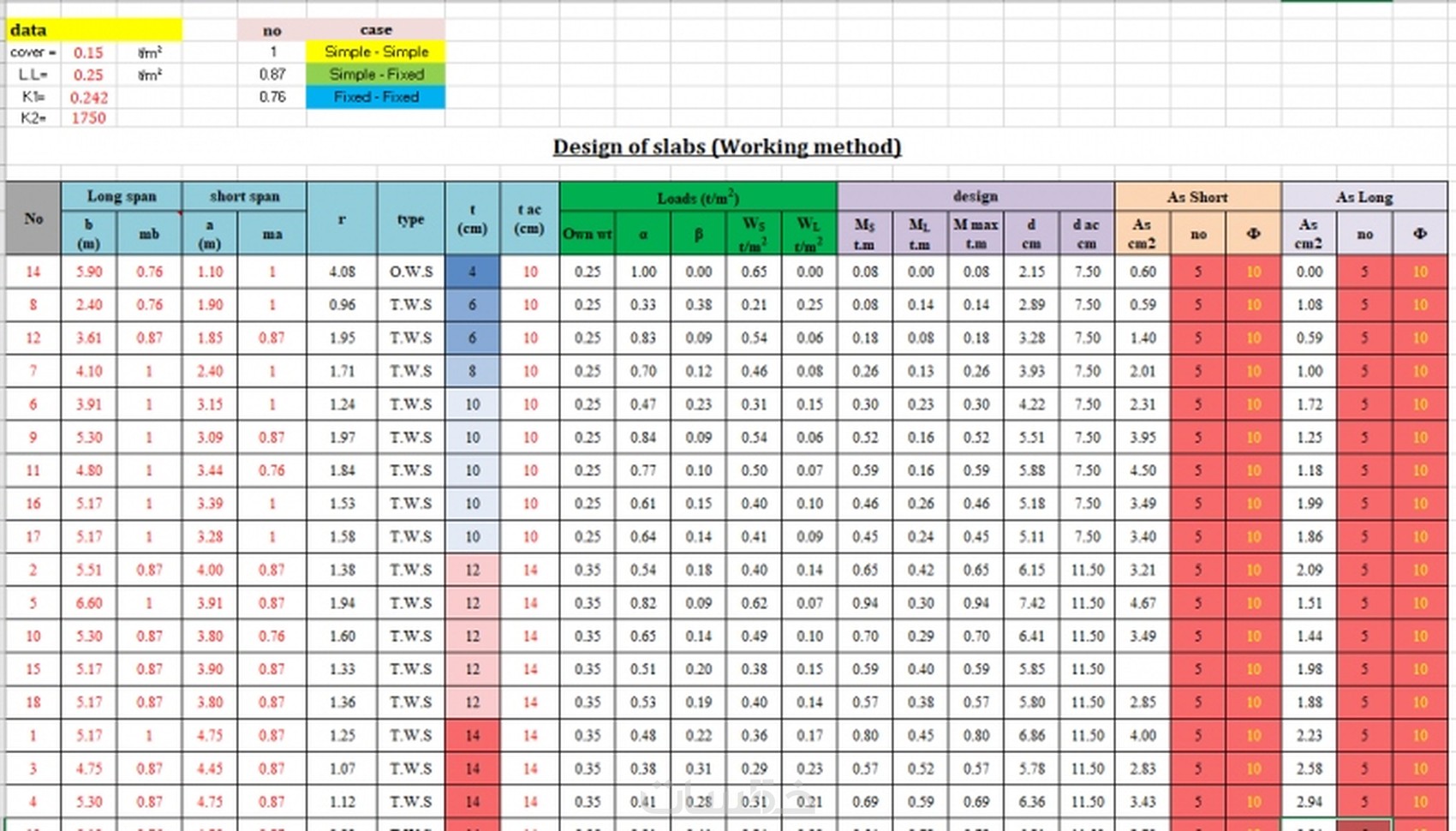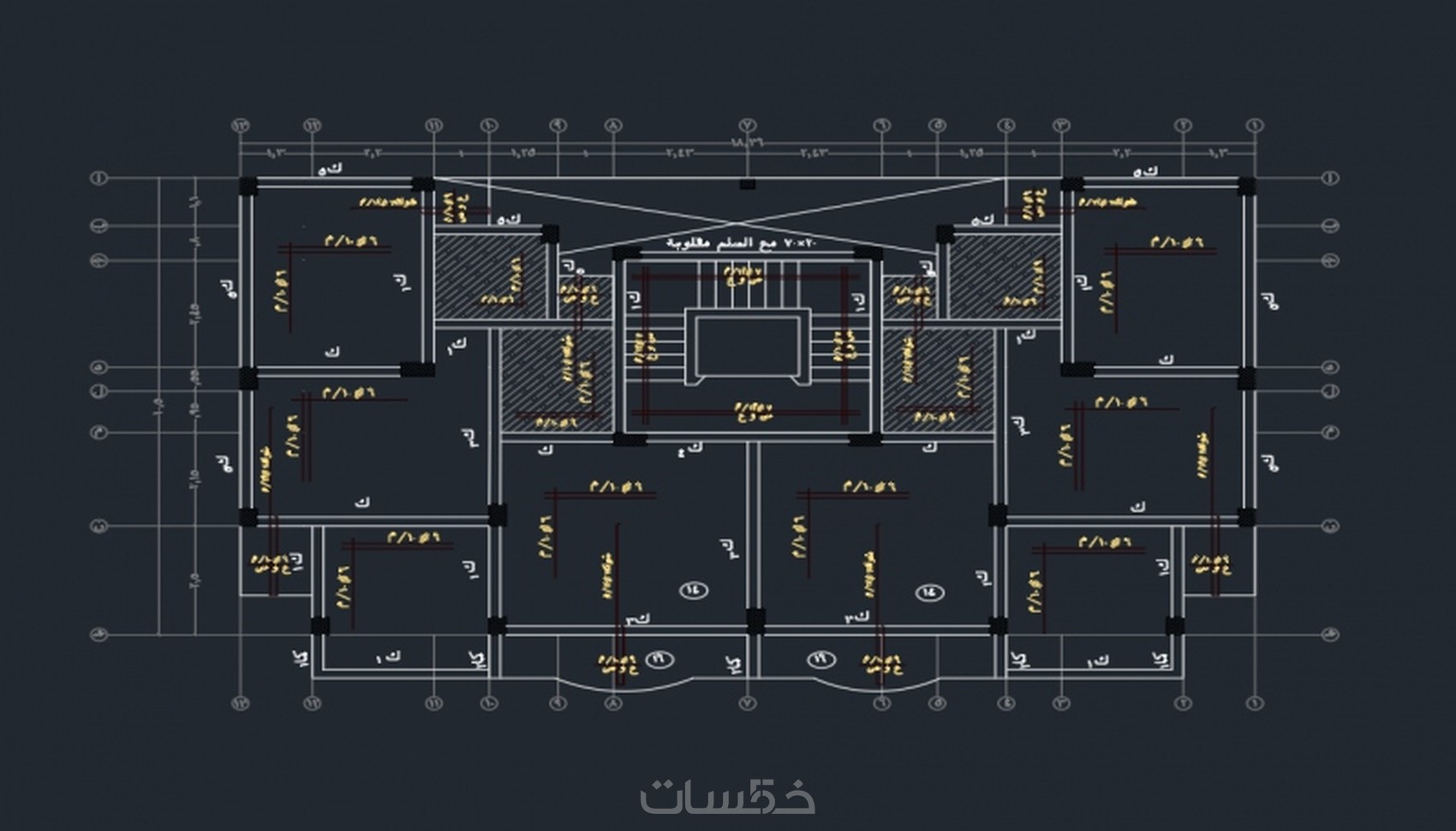 التصميم الانشائي للمبنى ( كمر وأعمدة و بلاطات - وقواعد سطحية أو لبشة) بكافة تفاصيل التسليح
