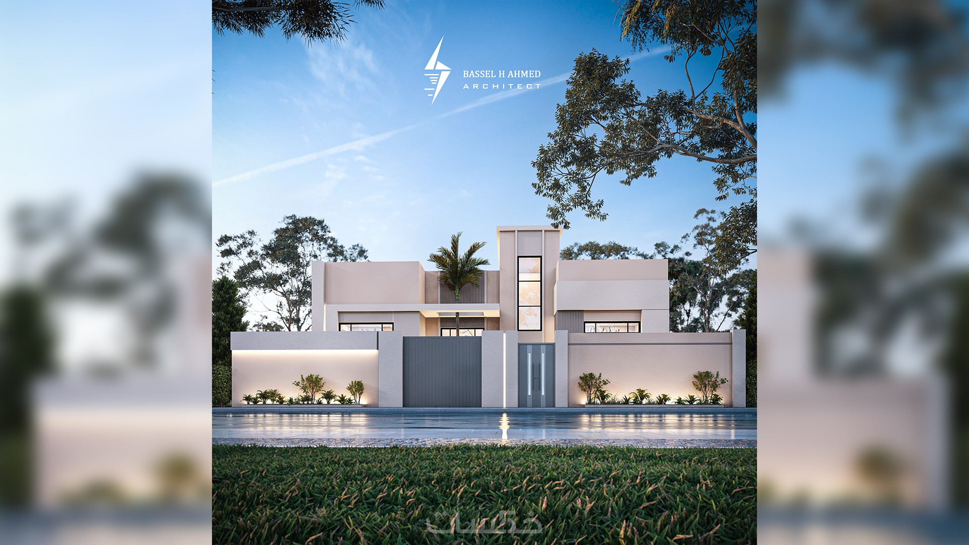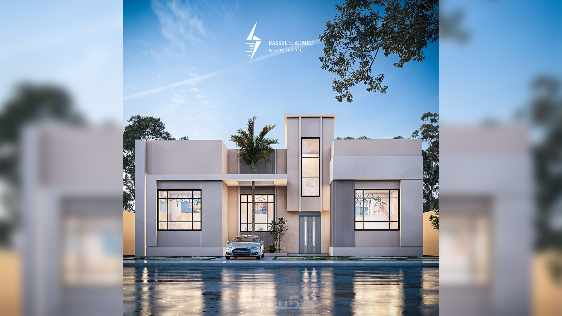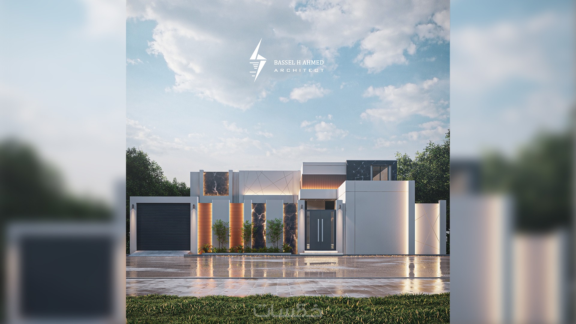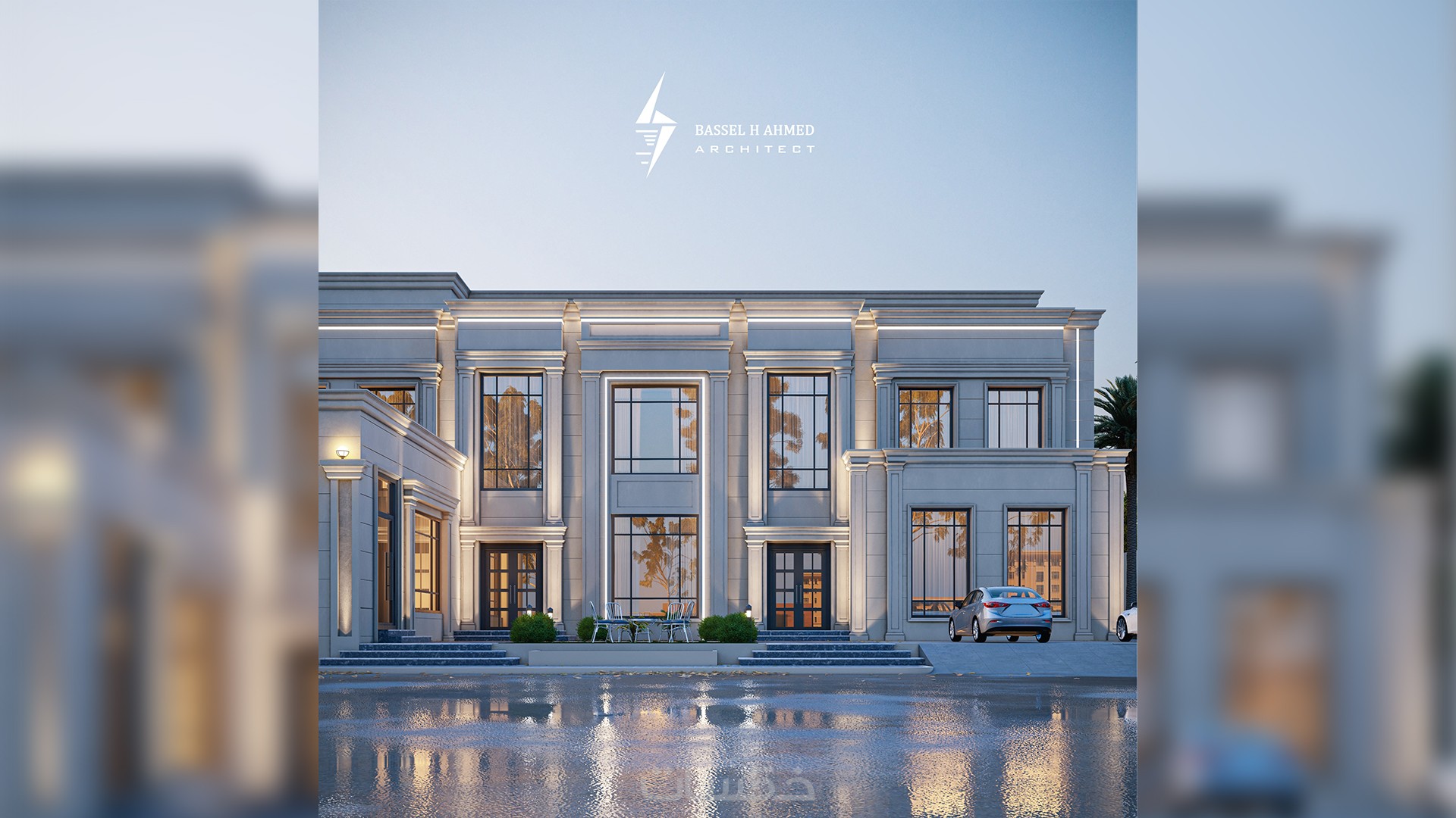 تصميم واجهة مودرن او نيوكلاسيك لفيلا دور واحد (لقطات شاملة نهارية وليلية)