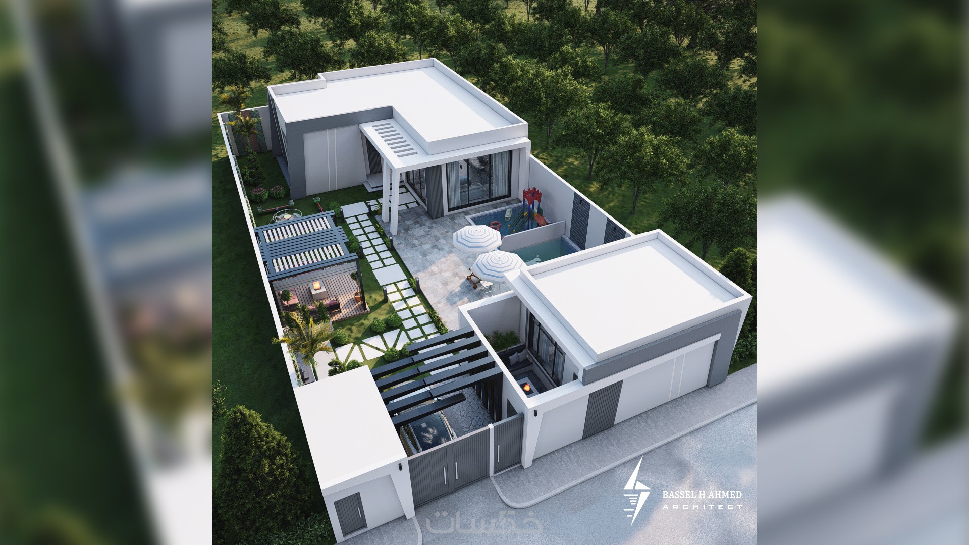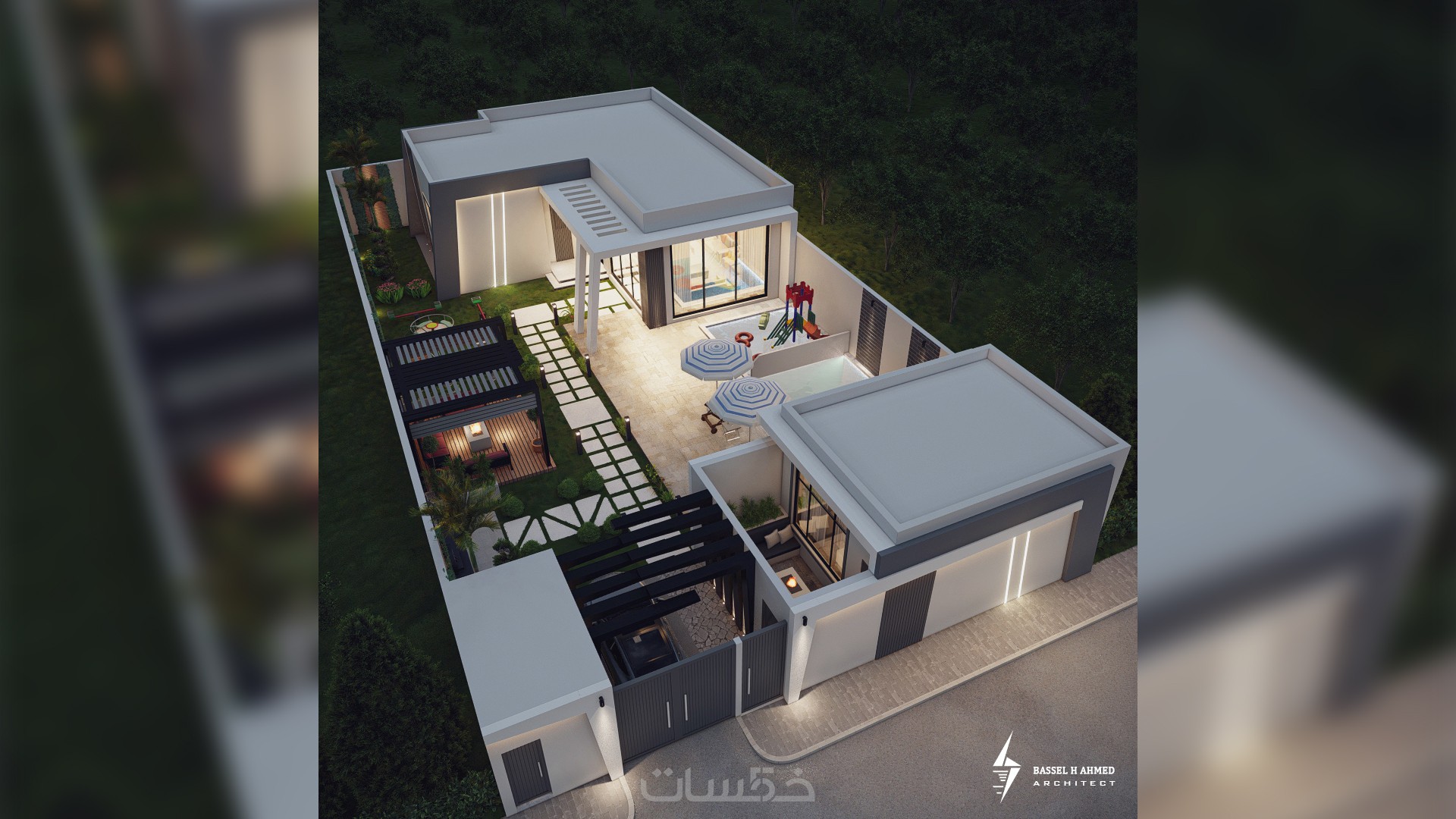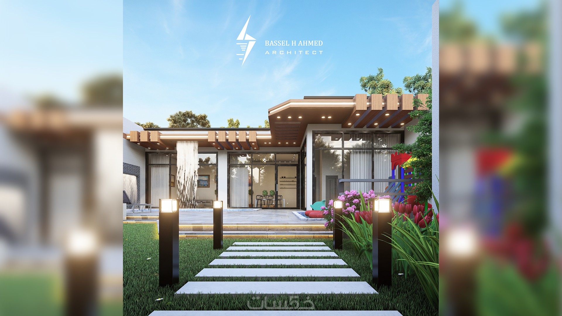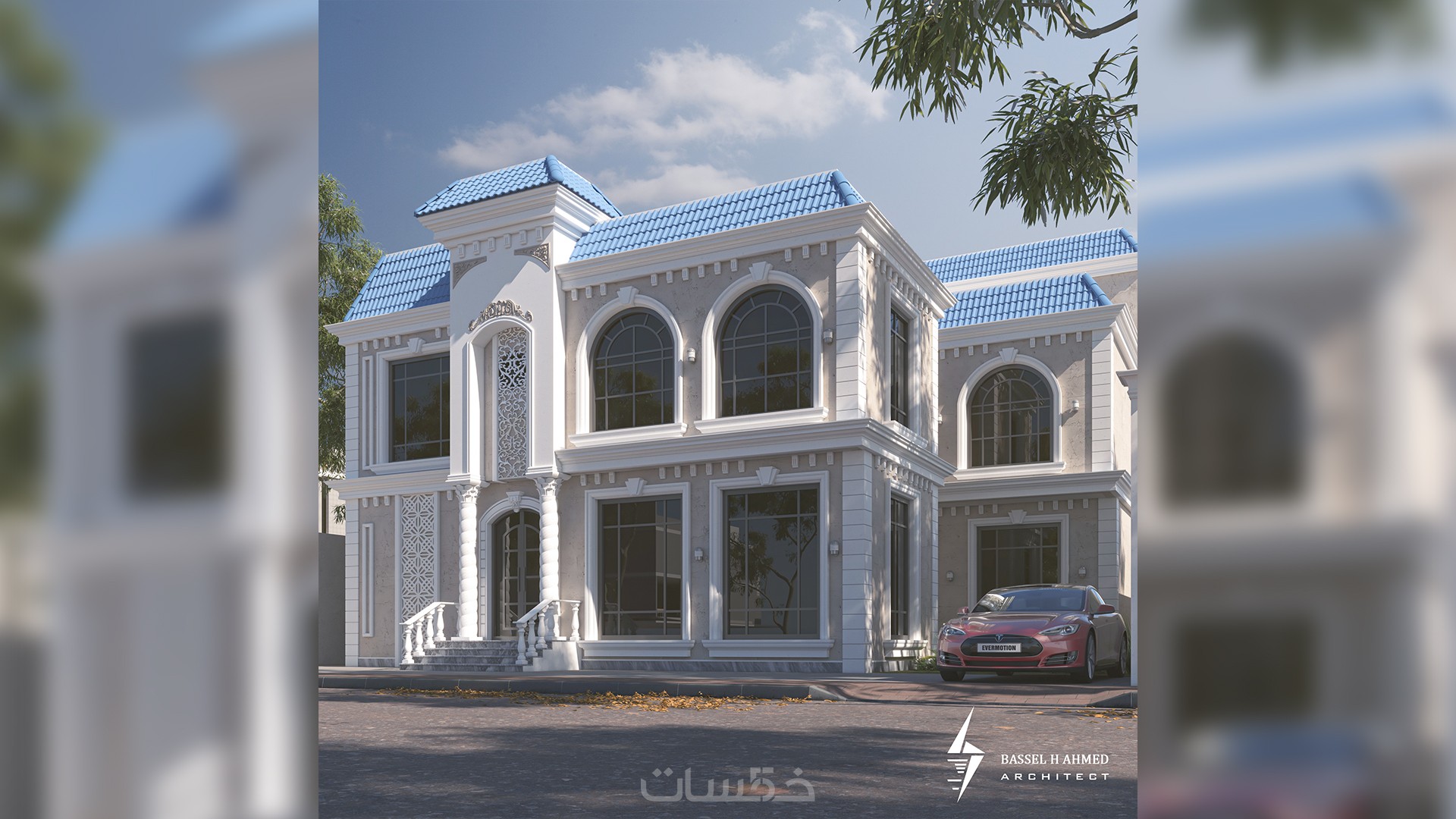 تصميم واجهة مودرن او نيوكلاسيك لفيلا دور واحد (لقطات شاملة نهارية وليلية)