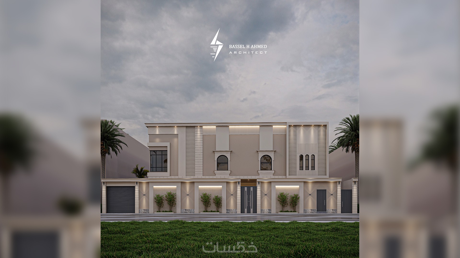 تصميم واجهتين مودرن او نيوكلاسيك لفيلا دورين مع السور( لقطات شاملة نهارية وليلية)