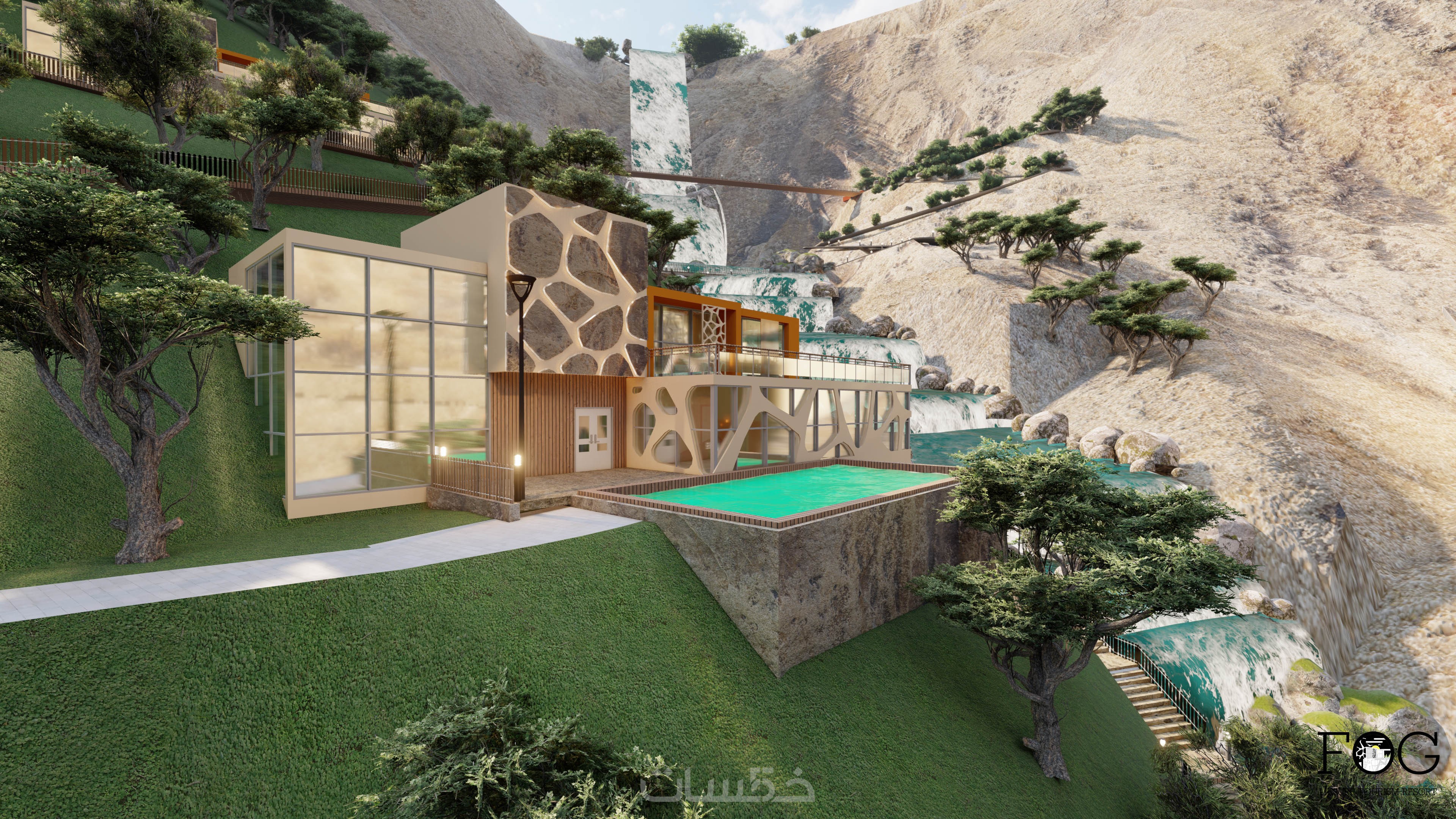 تصميم الواجهات الخارجية واظهارها لكافة المشاريع المعمارية ( سكنية - تجارية - خدمية )
