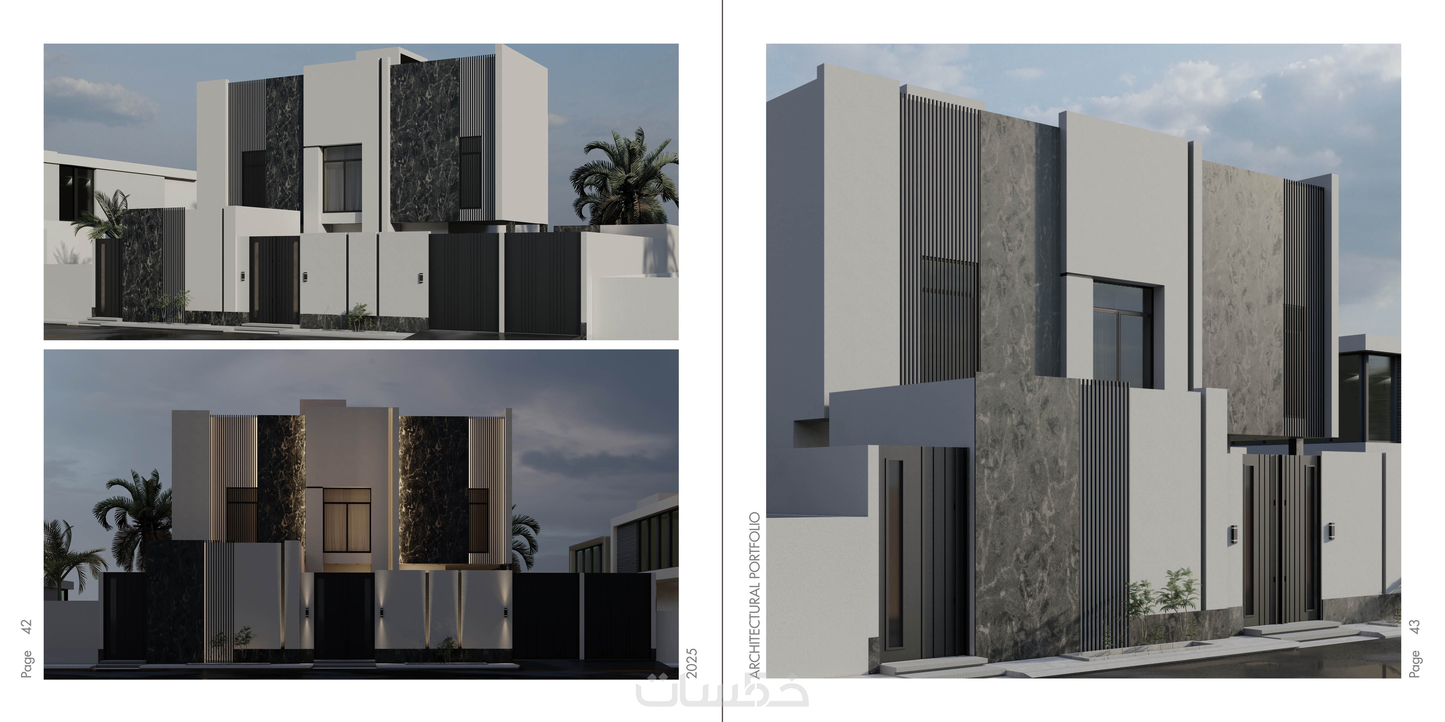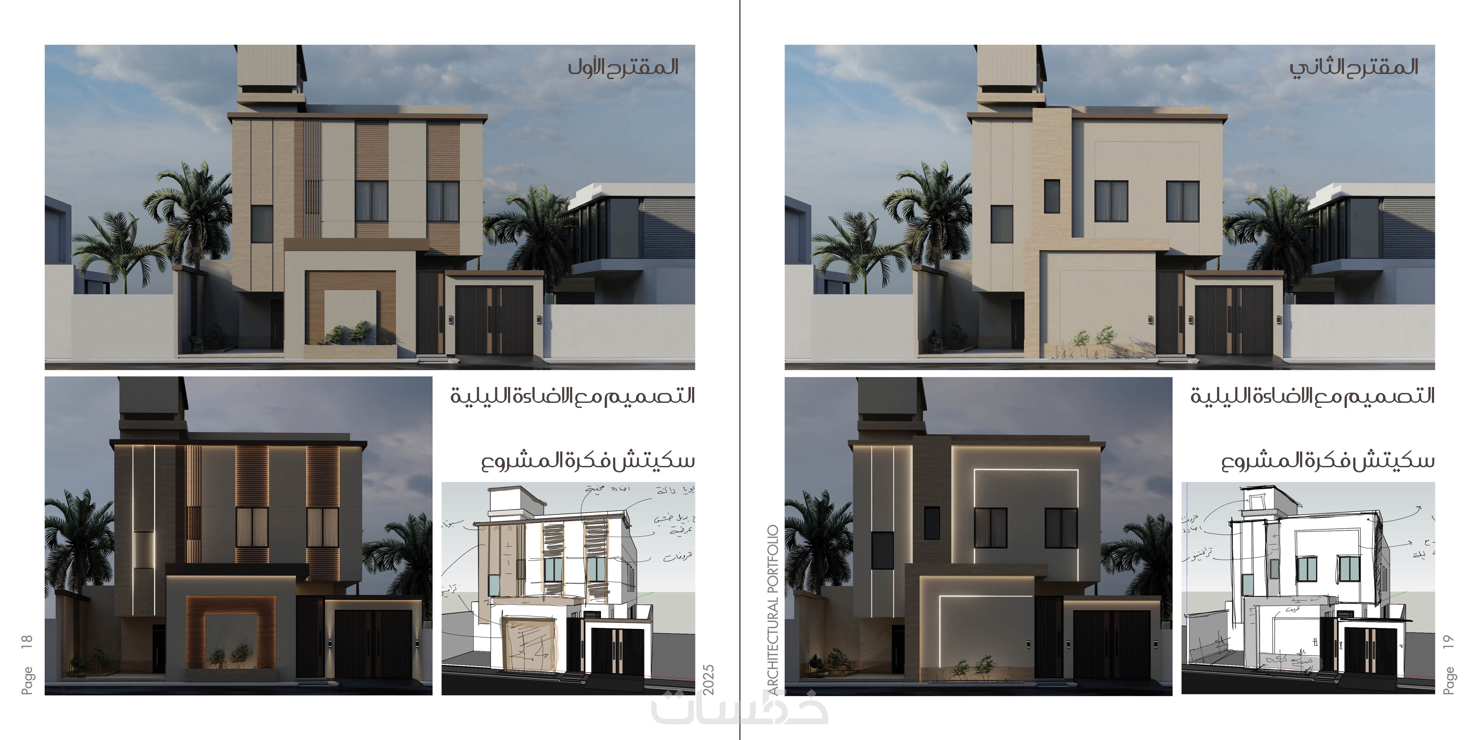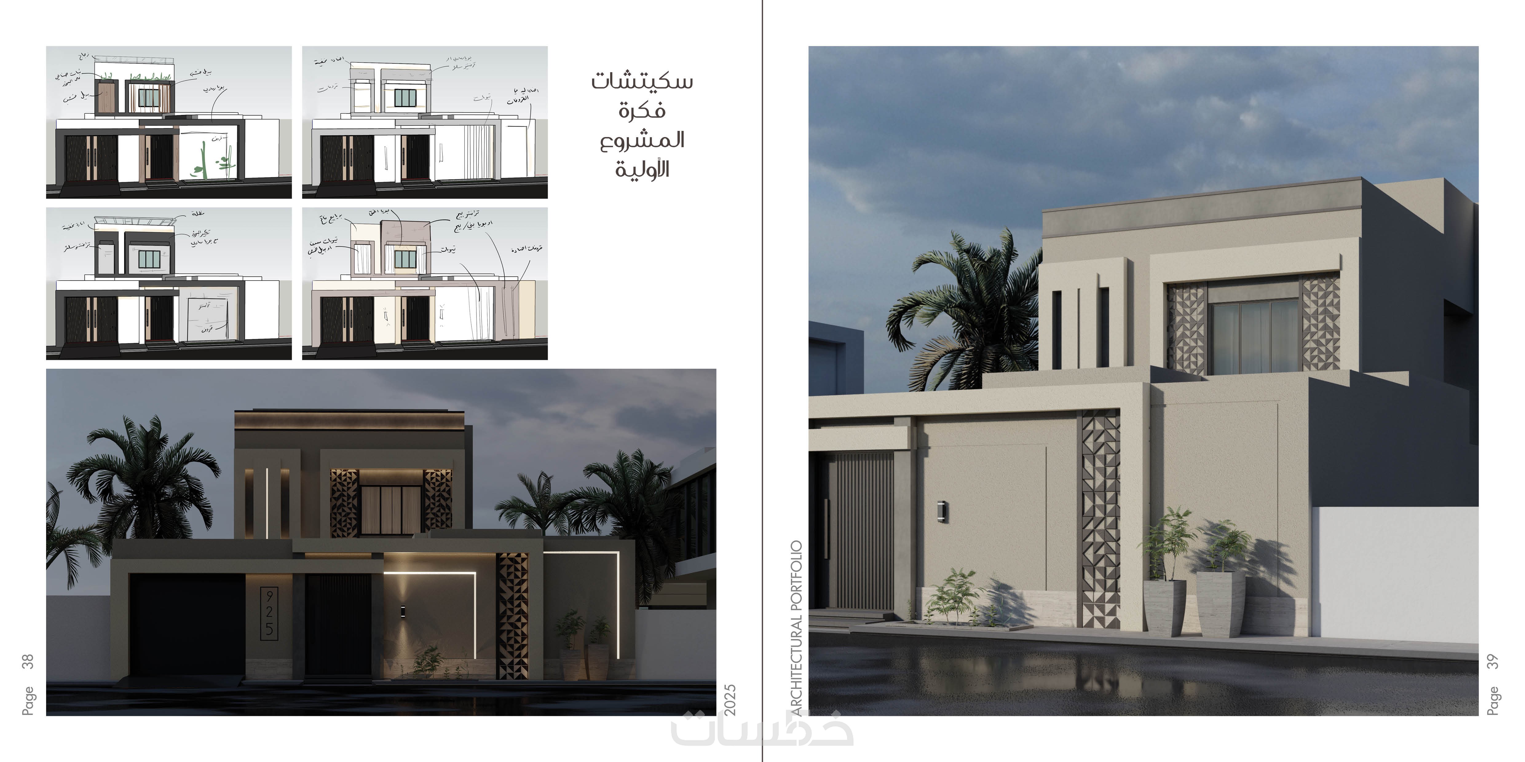 تصميم الواجهات الاضافية الثلاثة للفيلا اضافة للواجهة الرئيسية والسور