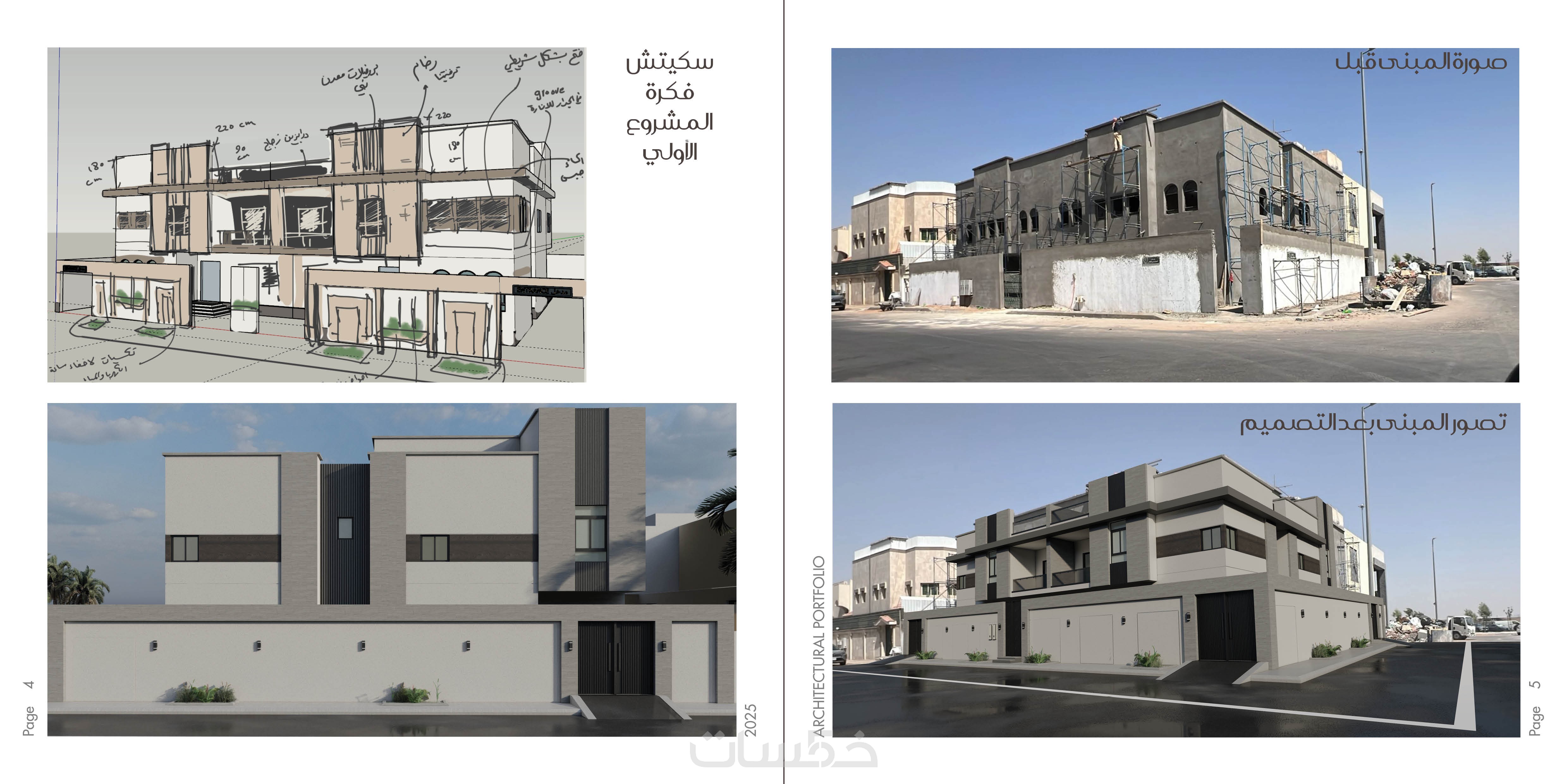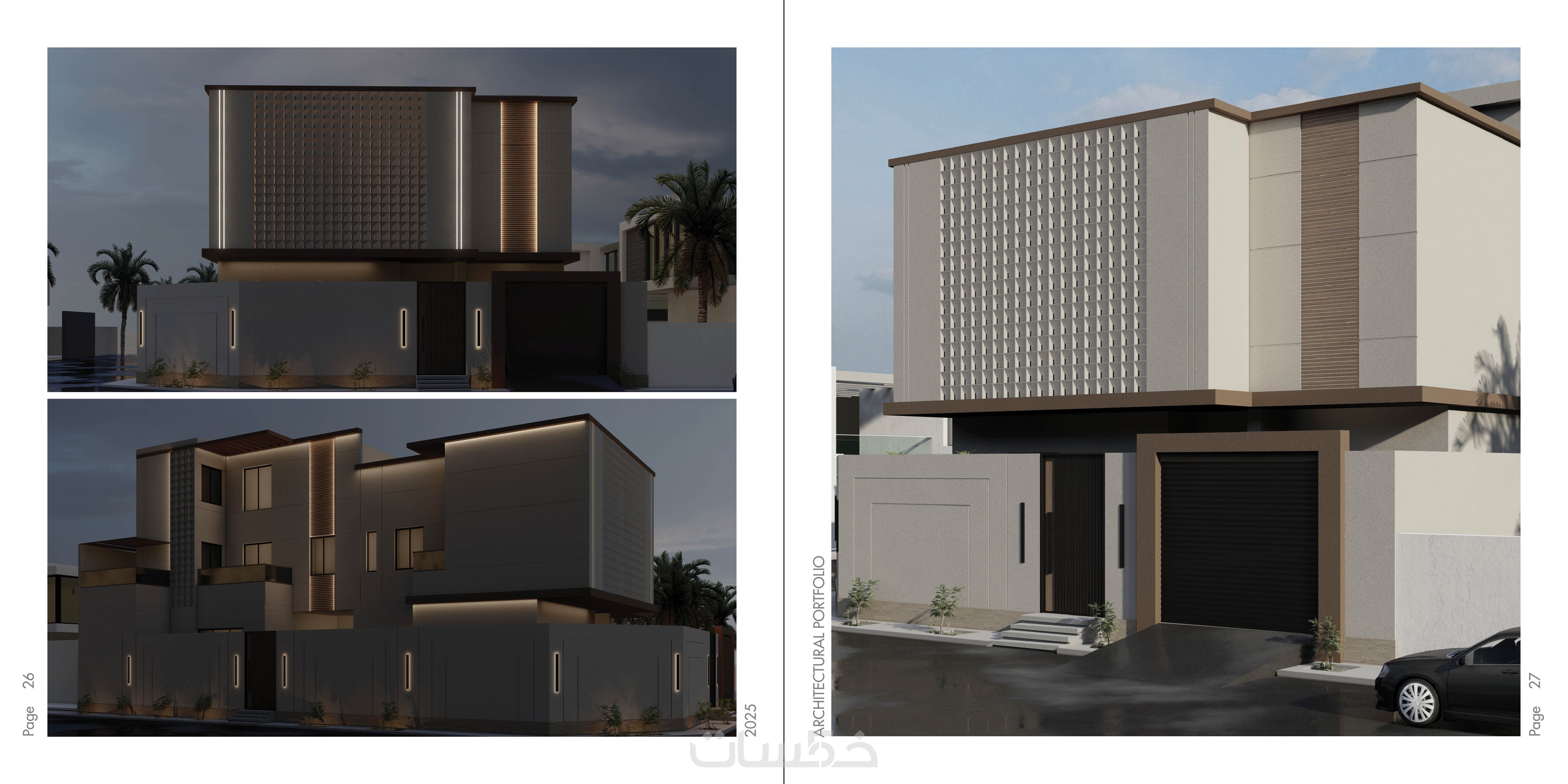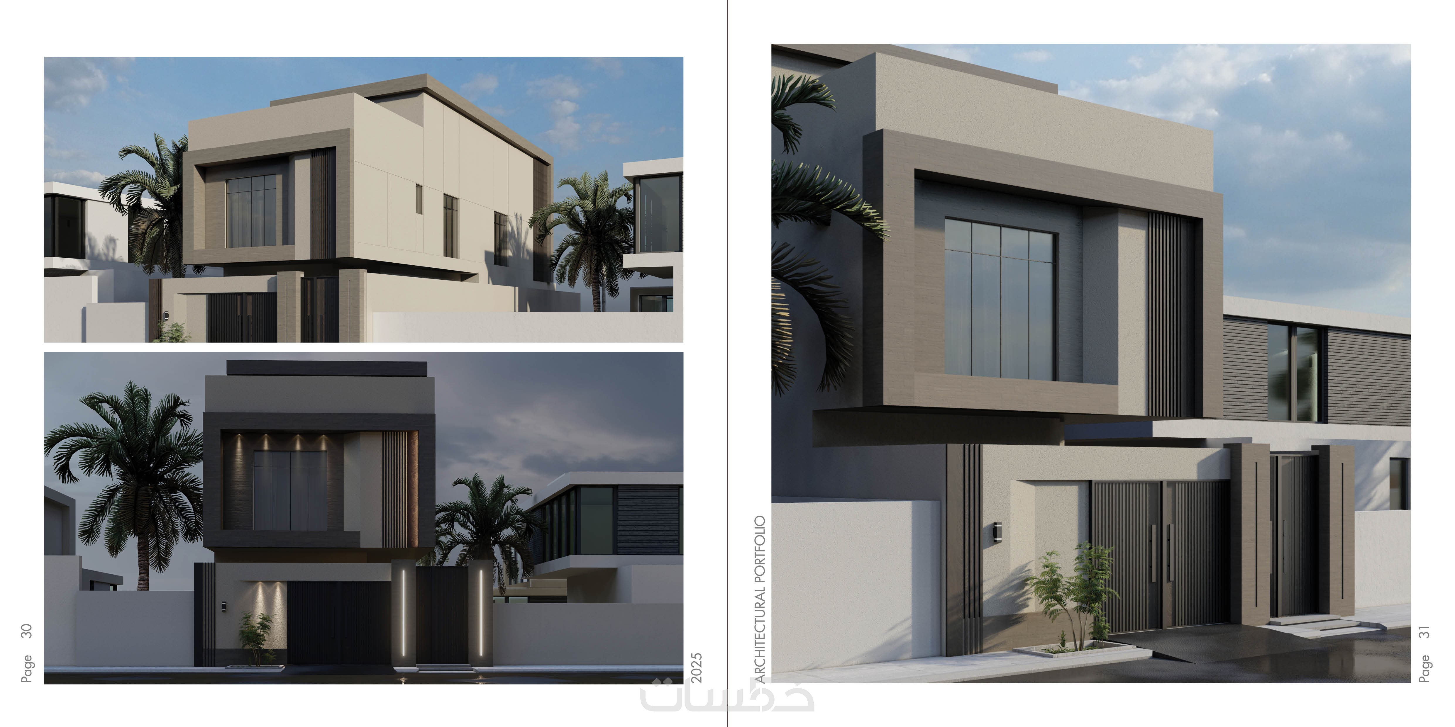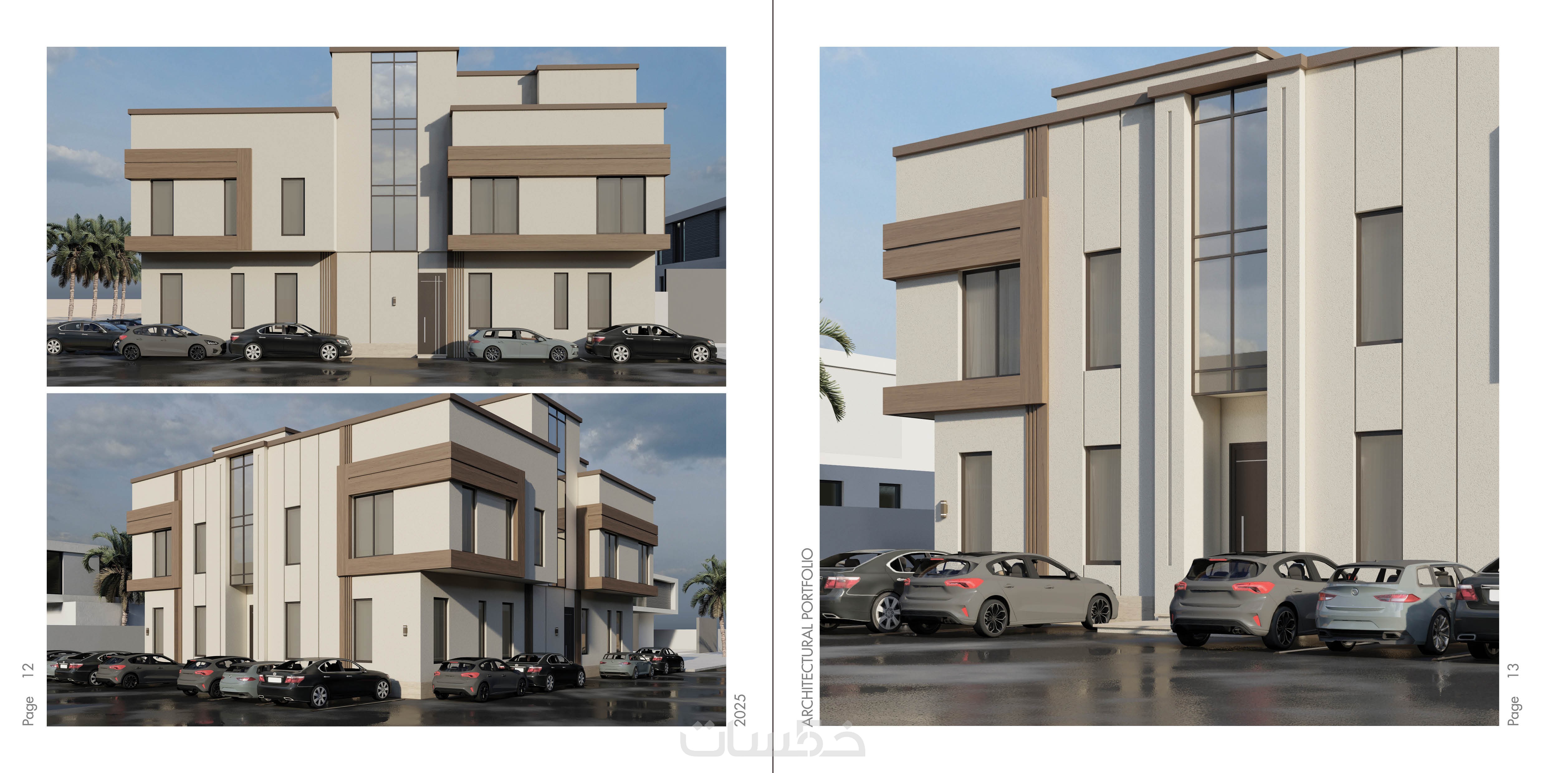 تصميم الواجهات الاضافية الثلاثة للفيلا اضافة للواجهة الرئيسية والسور