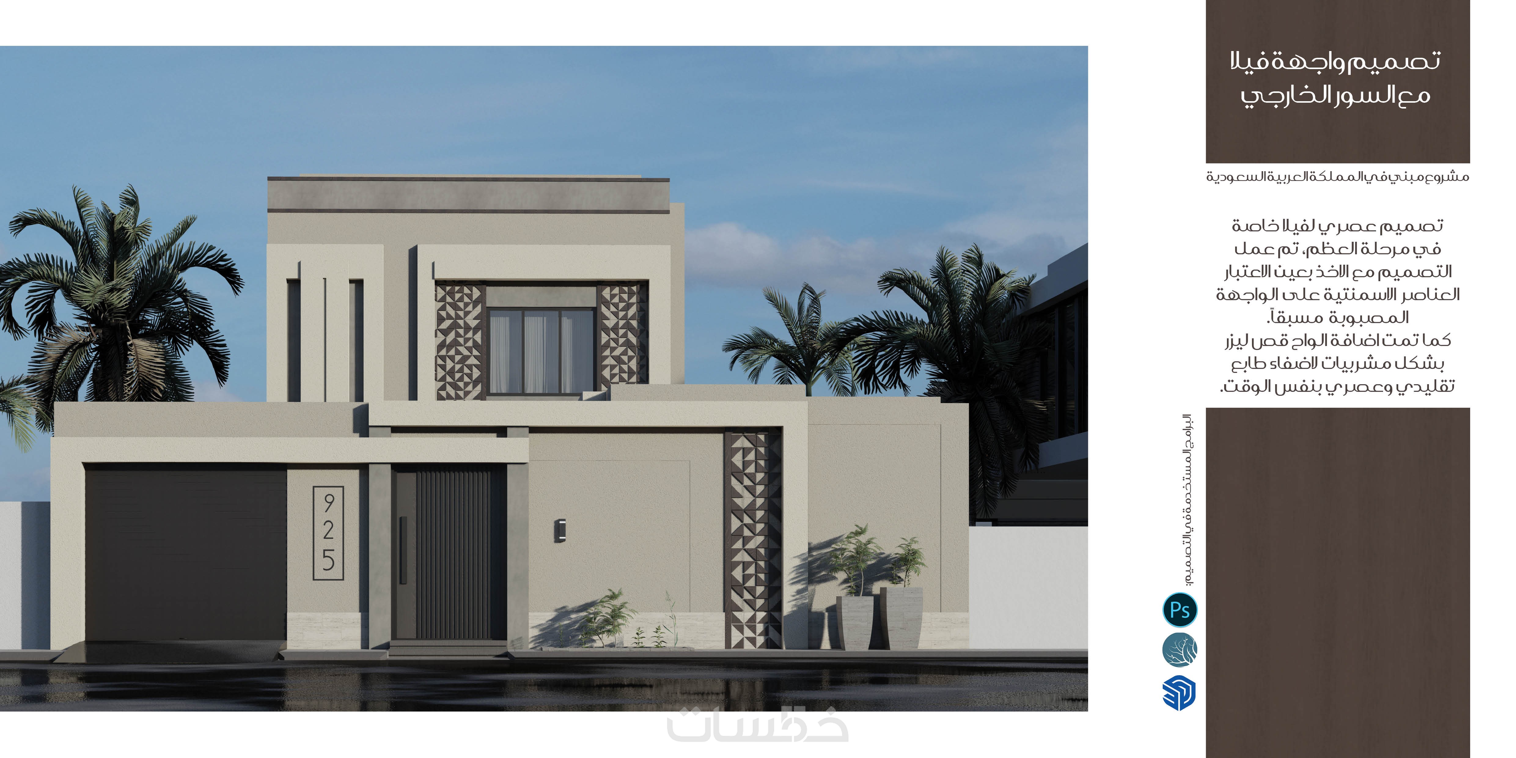 - تصميم واجهة للفيلا الخاصة بك بشكل عصري وحديث وقابل للتنفيذ بأحدث مواد البناء المتوفرة في السوق.