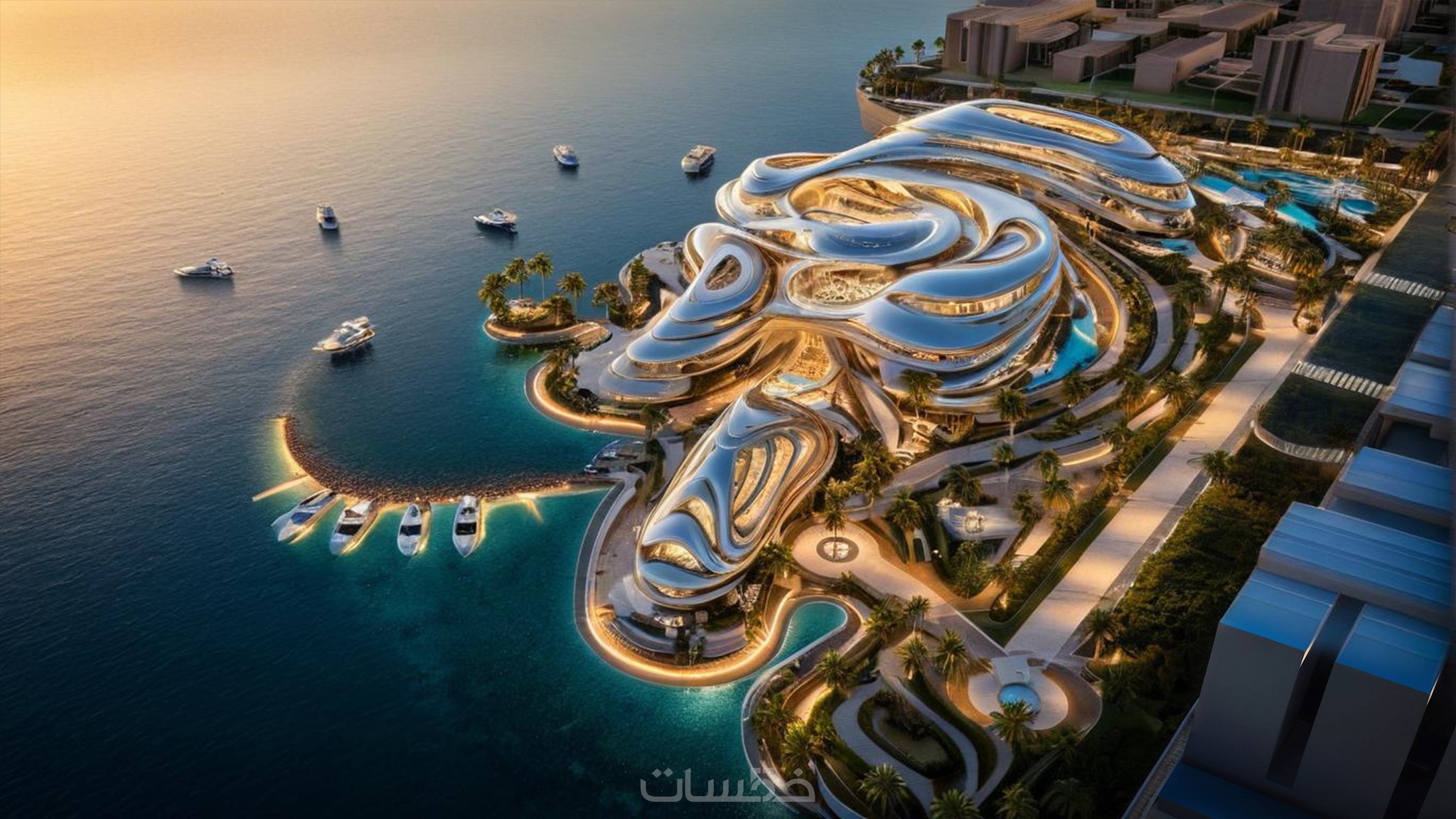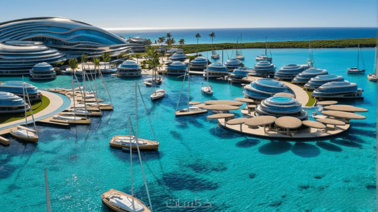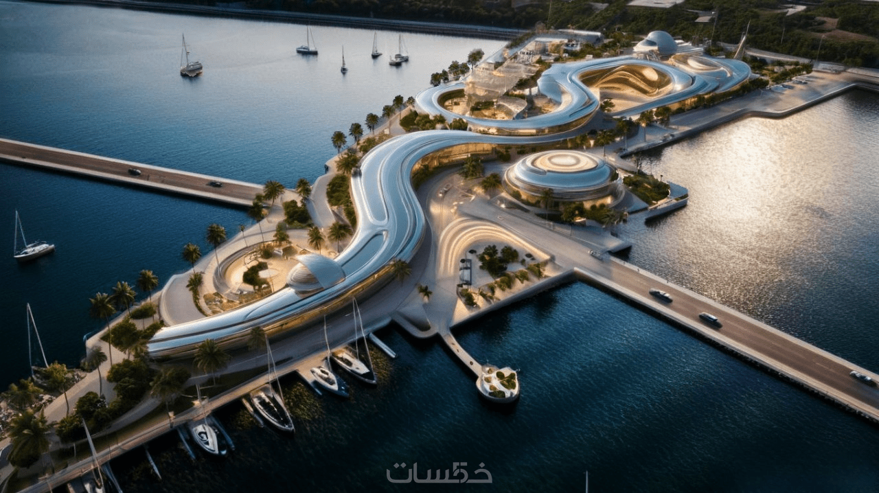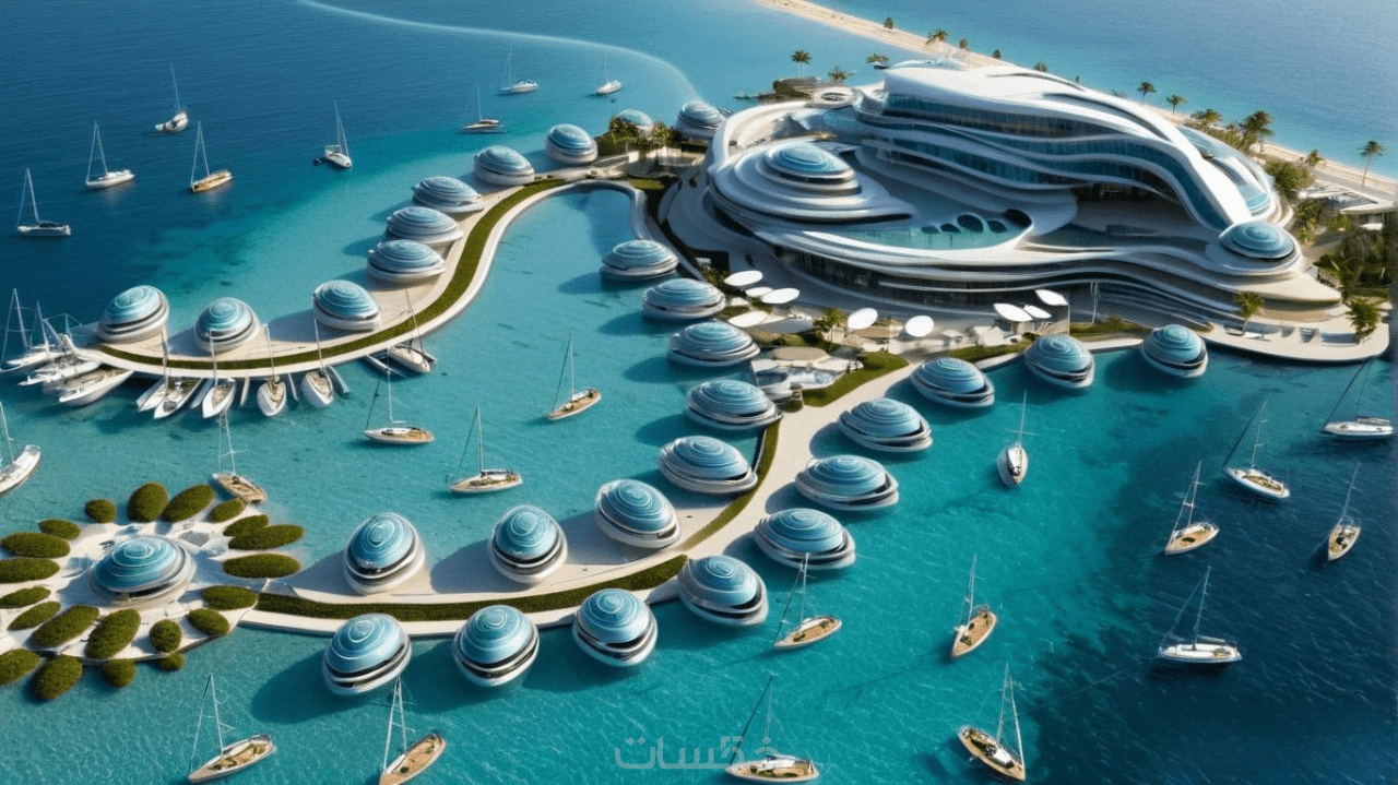 تصميم معماري مبتكر ومستدام يلائم البيئة البحرية ويعكس هوية المشروع بأسلوب عصري.