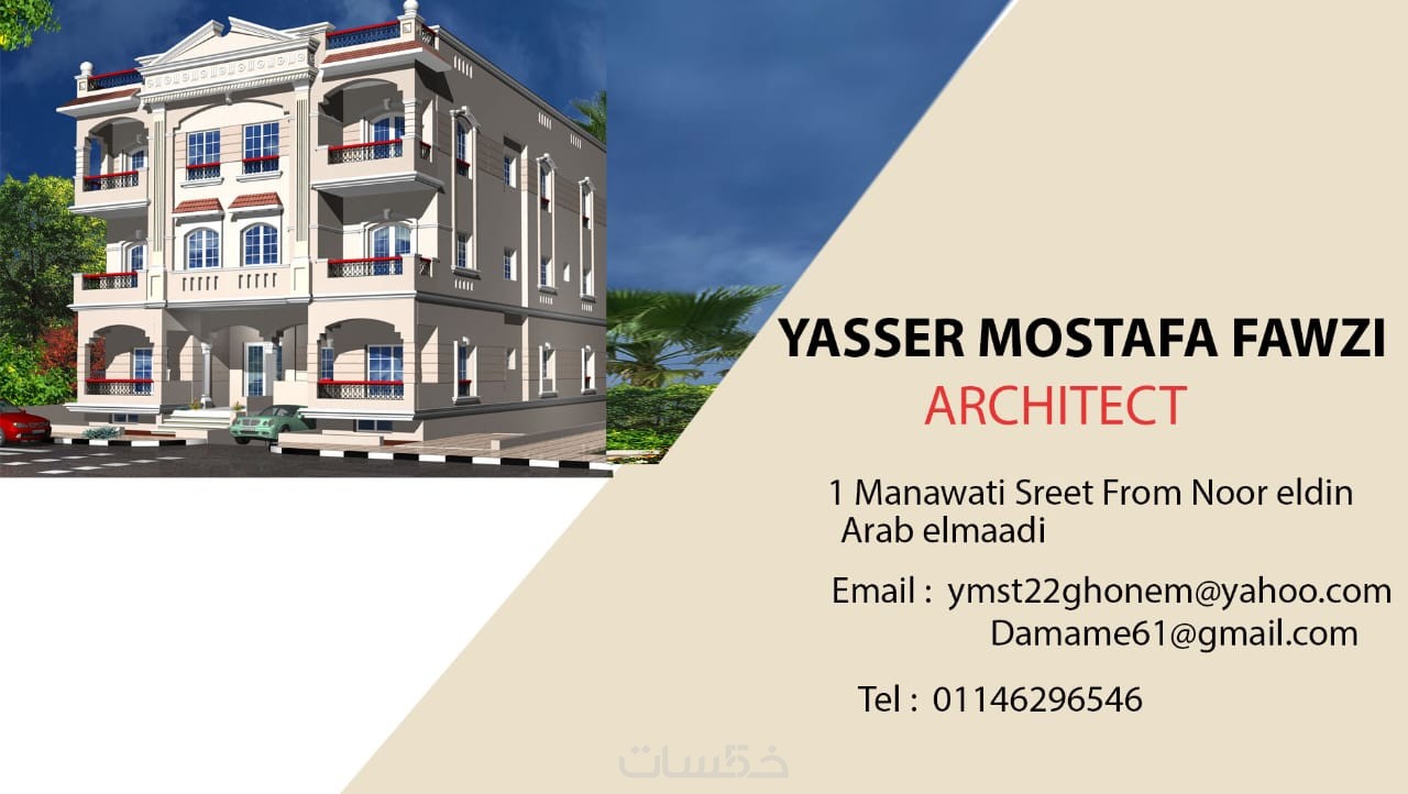 اقدم تصميمات و مخططات معمارية لفيلات و مختلف انواع المبانى لكل العنلاء الاعزاء على قطعة الارض ملكه او غير ذلك..ممكن العمل فى مشاريع المبانى التجارية و السكنية و الفيلات و المنشات الطبية و الترفيهية و التعليمية مع اضافة لاند سكيب خارجى و اظهاره .يتم عمل مساقط افقية (Plans) لجميع الطوابق لمختلف المبانى و ايضا الاظهار المعمارى بواسطة الفوتوشوب مع عمل الواجهات اللازمة لمشروع(Project) الخدمة الاساسية تشمل تصميم مساحة 30 متر مربع ..و ممكن التصميم ببرنامج اتوكاد حسب الطلب مع توضيح كافة المعلومات على الرسم و جميع الابعاد بدقة...التسليم يكون على شكل ملفات pdf أو ملفات اتوكاد بصيغة dwg عالية الجودة..عدد التعديلات للخدمة الاساسية اربعة تعديلات كحد اقصى