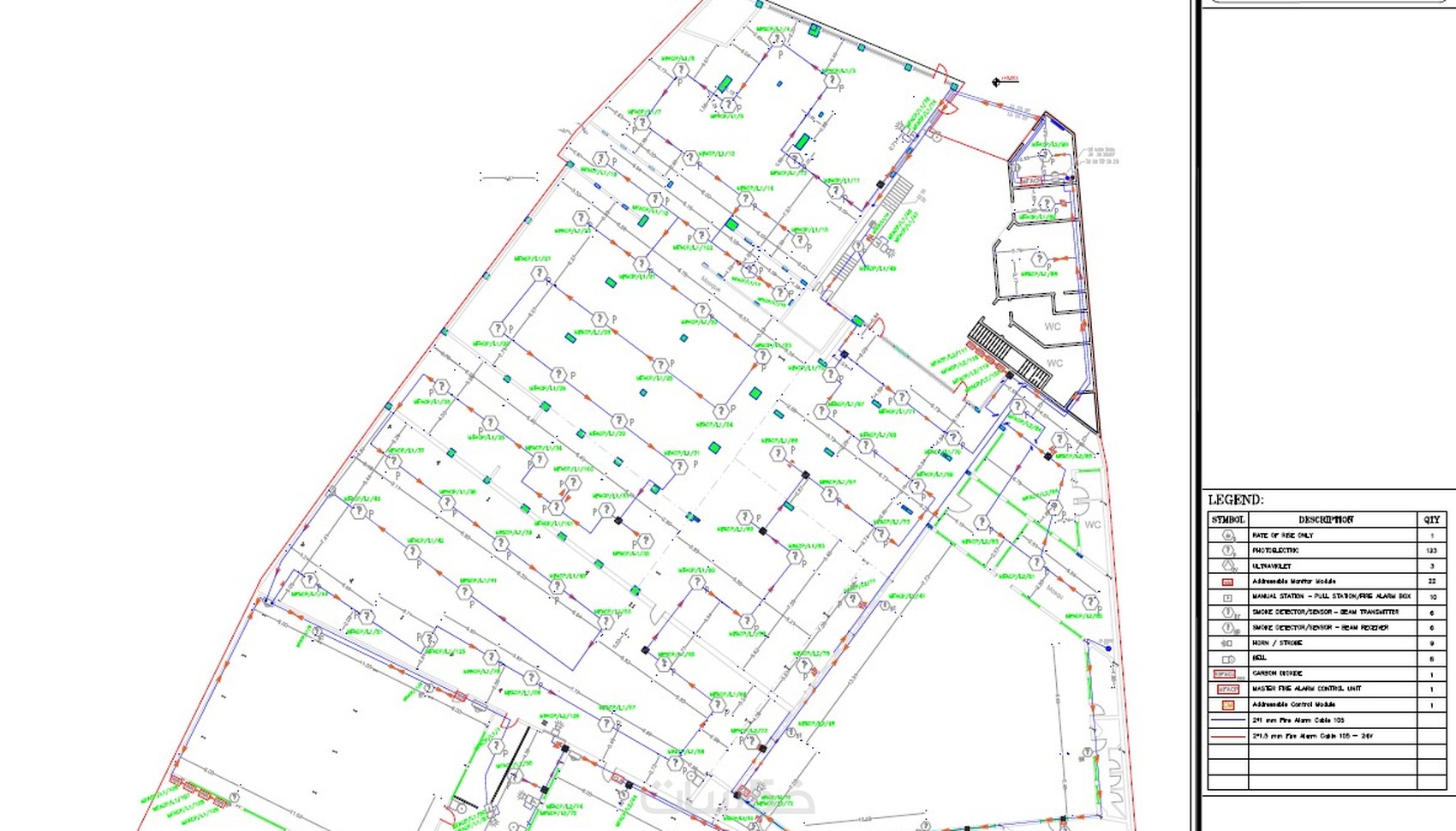 عمل تصميم لمكافحة أو (إنذار الحريق) لمساحة 40 متر