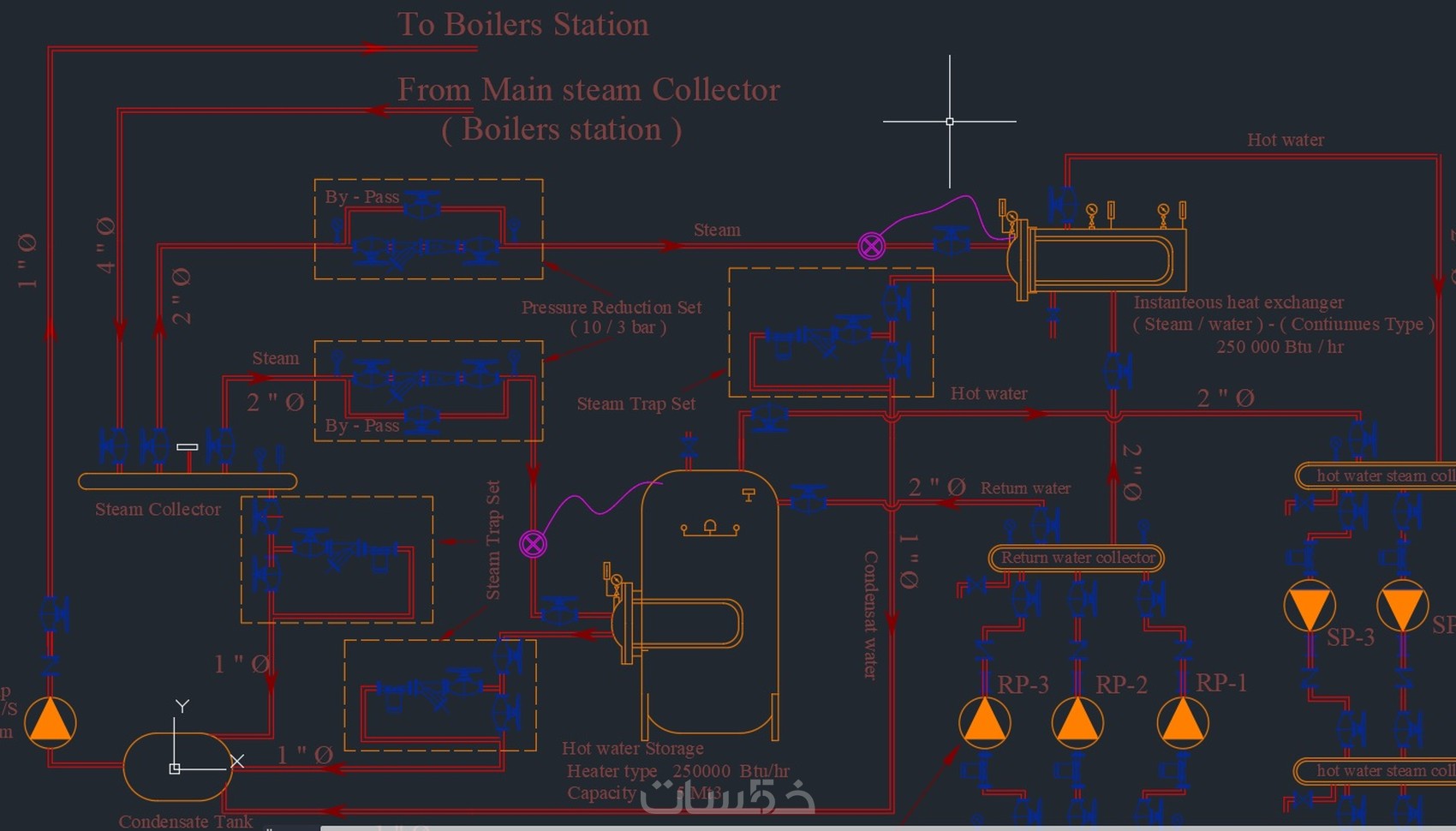 تصميم نظام تكييف بنظام المياه المثلجة Chilled water مائة متر مربع من المساحة المغطاه .