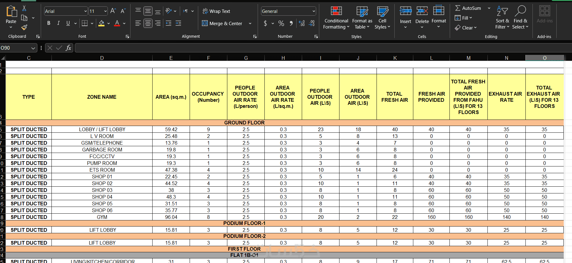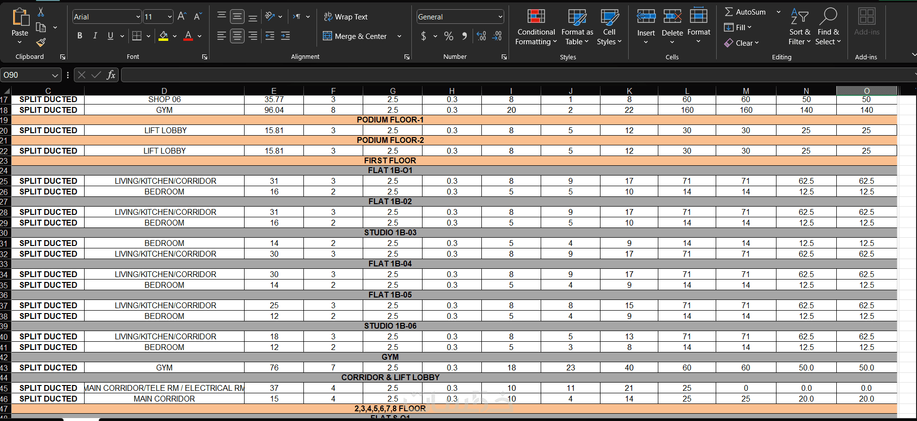 اعداد مقايسي وحصر كميات التكييف والصرف الصحي وتغذية المياه ومكافحة الحريق