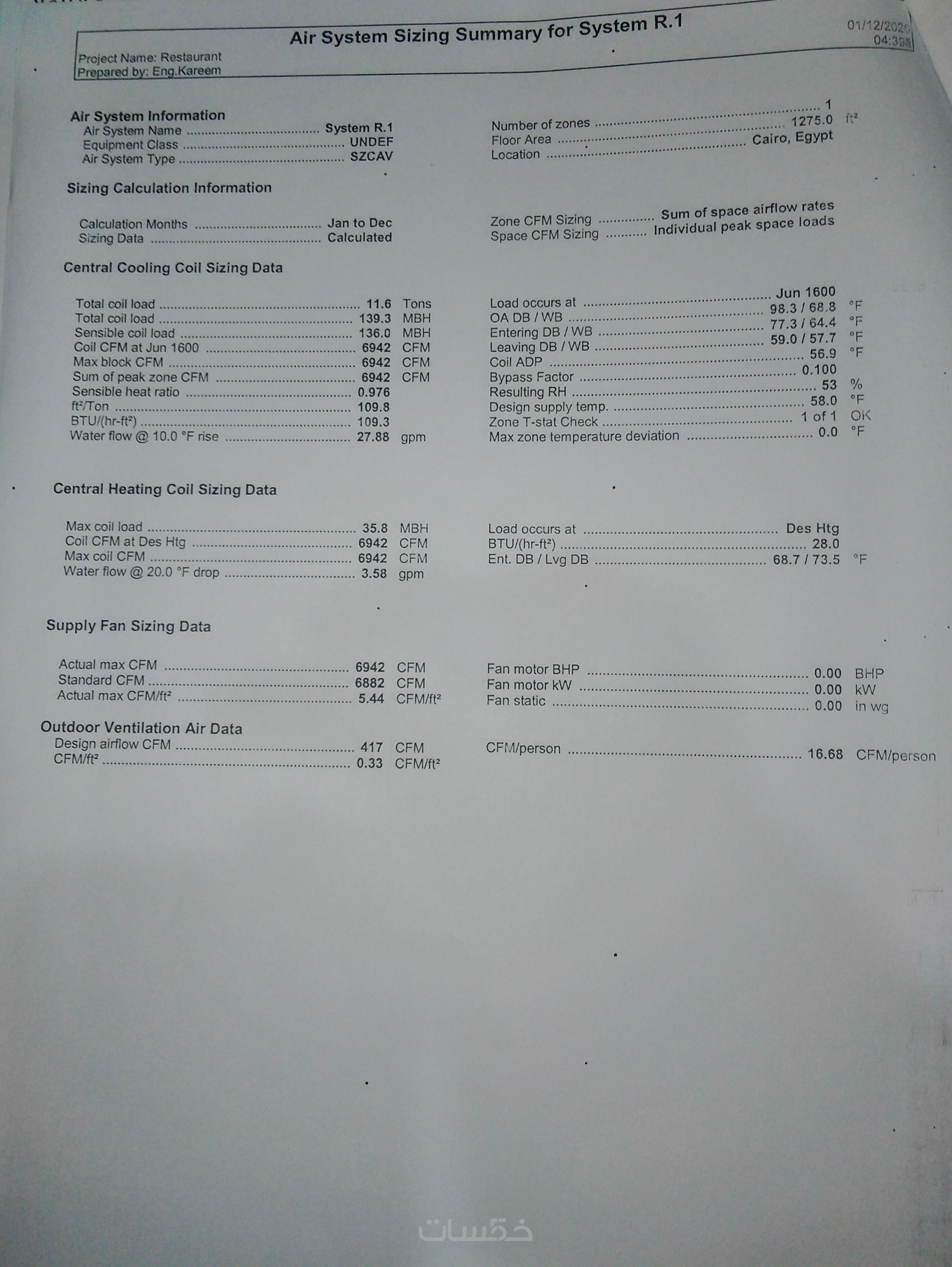 حساب الأحمال الحرارية + تصميم مبدئيلمساحة حتى 500 م²