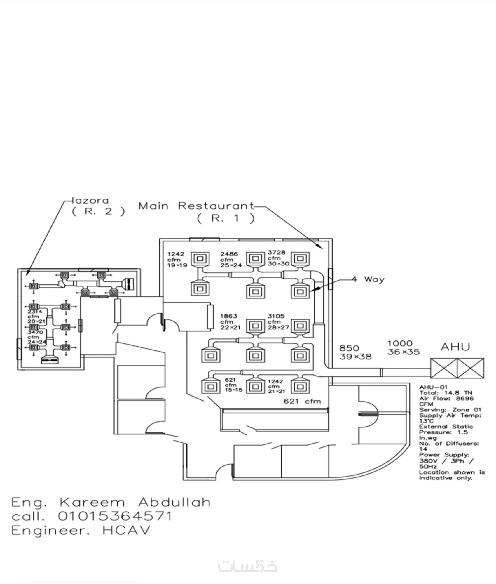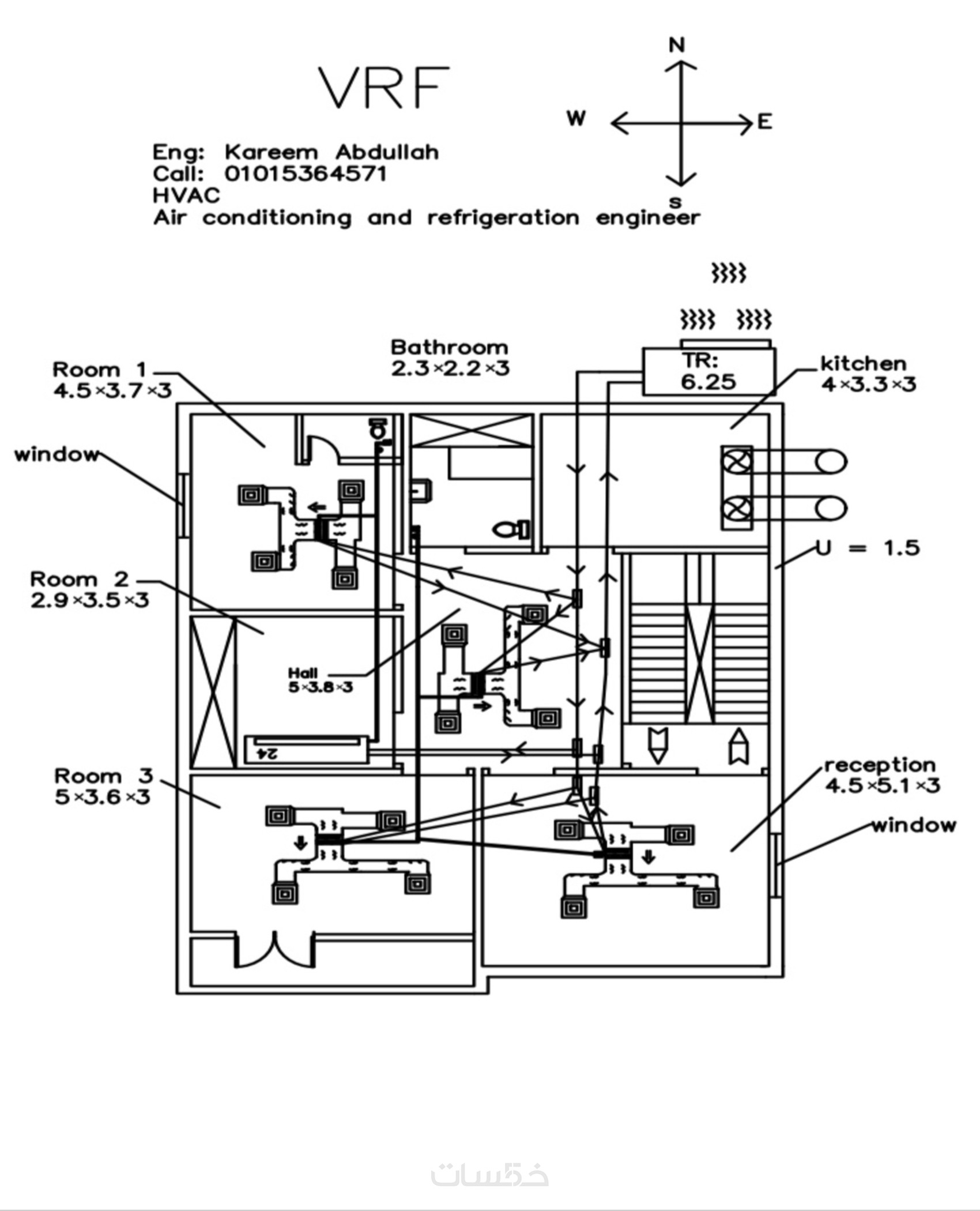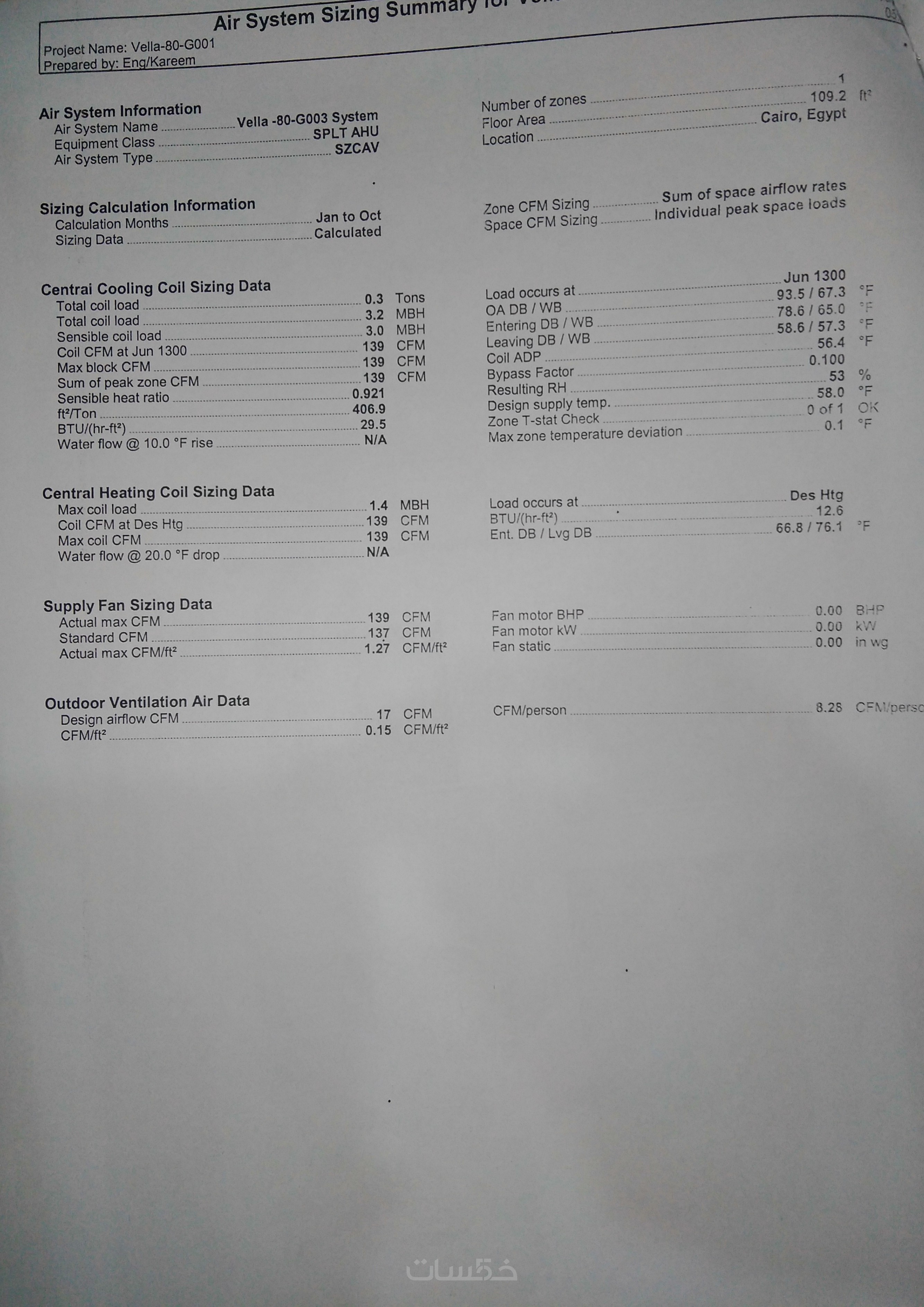 حساب الأحمال الحرارية + تصميم مبدئيلمساحة حتى350 م²